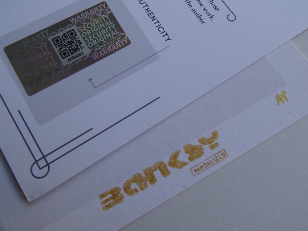 Girl With Heart Shaped Float This work commemorates Banksy's artwork and his involvement in the Louise Michel project. Banksy x Post Modern Vandal The "Girl With Heart Shaped Float" commemorates Banksy's latest iteration of his iconic "Girl with Balloon" piece with a pink flotation device in place of a heart shaped balloon. Advanced photogrammetry techniques were used to imprint an exact copy of the original artwork from the Louise Michel onto each and every one of these prints. Each print also features a Banksy Vandalized signature stamped by hand in black Delicata ink, embossed stamp, and comes with a Certificate of Authenticity with Legitly's verification system so you always know it's the real deal. Dimensions: 13 x 17 Inches / 33 x 43 cm Medium: Printed on museum quality Hahnemühle fine art paper - 308gsm Provenance: Embossed stamp // Hand-stamped Signature // Hand numbered // Certificate of Authenticity with LegalityTM Authenticity Verification system Edition: Limited Edition of 50 35% of the original sale were donated of net proceeds were donated to the Louise Michel Post Modern Vandal is proud to release its first set of Banksy Vandalized limited edition series prints - featuring the latest works inspired by Banksy transferred onto high quality Giclée prints and made available to the public.