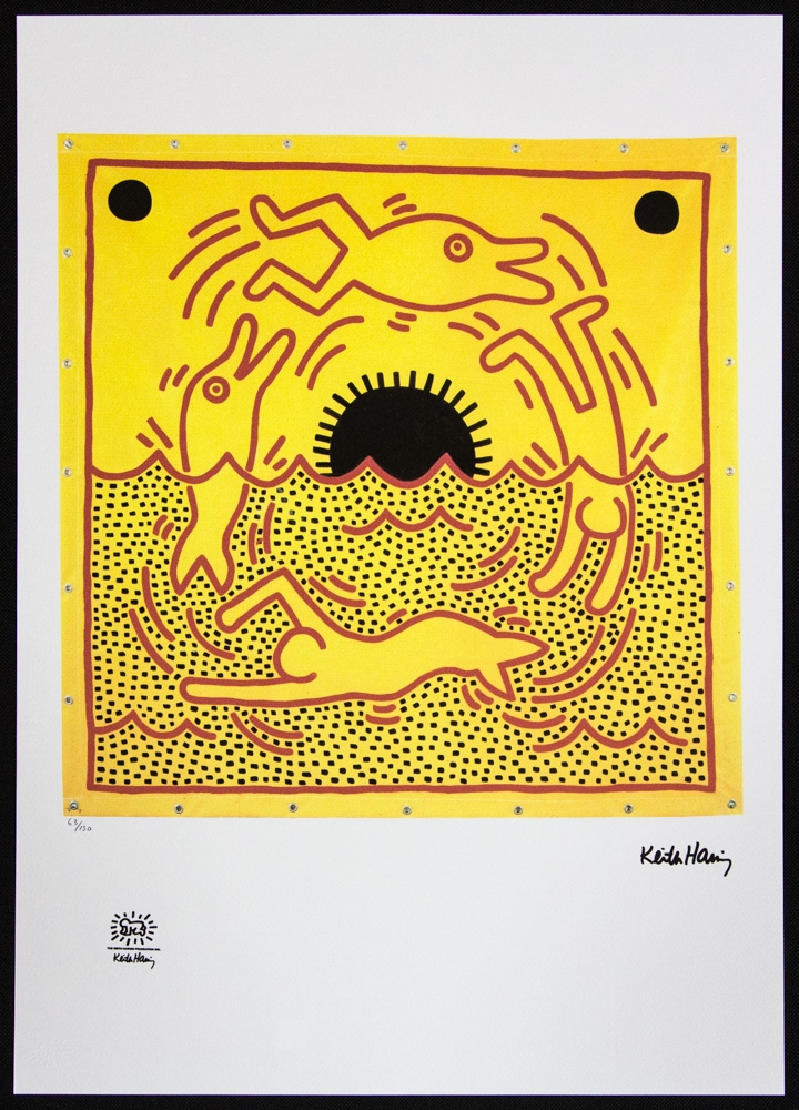 Keith Haring (naar) zonder titel, offsetlithografie, gelimiteerde oplage van 150, bladformaat 50 x 70 cm, plaat gesigneerd rechtsonder, genummerd in potlood linksonder 63/150, katoenpapier, Keith Haring stempel Foundation en embossing linksonder, zonder aanvullende documentatie, verkocht zonder lijst; we bieden binnenvaart aan, als de koper meerdere items wint, zullen we de verzending combineren