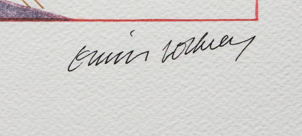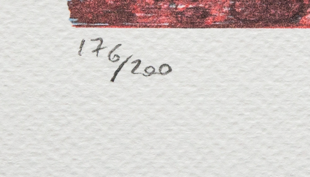 David Hockney (naar) "Sun" uit "Weather Series", gelimiteerde oplage van 200 exemplaren, offsetlithografie, plaat gesigneerd rechtsonder, genummerd in potlood linksonder 176/200, dik katoenpapier, met reliëfstempel SPADEM, Paris, bladformaat 35 x 50 cm, zonder aanvullende documentatie, verkocht zonder lijst; wij bieden in-house verzending, als de koper meerdere items wint, zullen we de verzending combineren