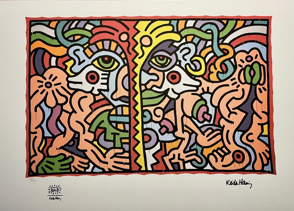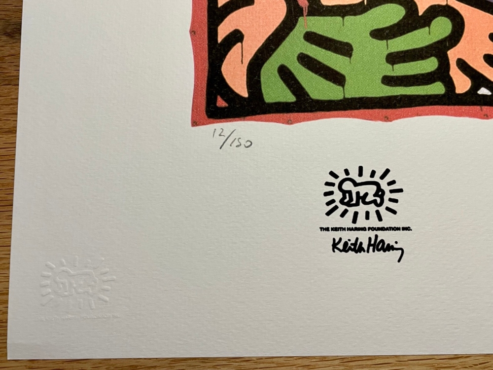 Lithografie "Zonder titel" Plaat met de hand gesigneerd en genummerd Gelimiteerde oplage van 150 stuks Elk stuk is individueel genummerd #12/150 Totale afmetingen: 50 cm x 70 cm Droogstempel Keith Haring Foundation