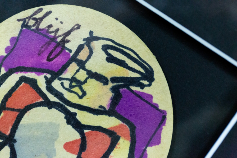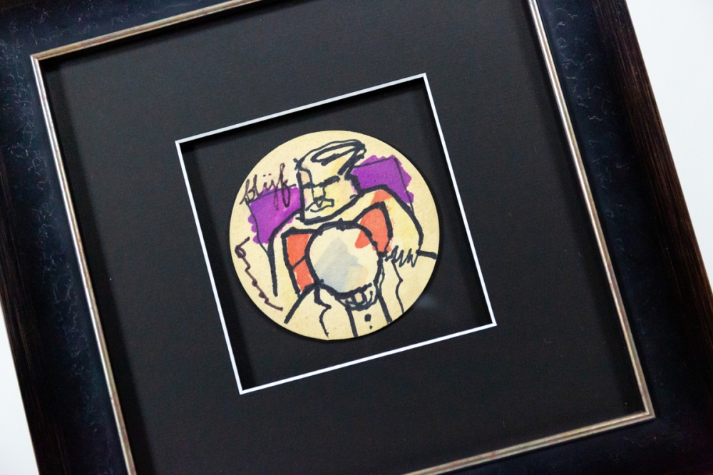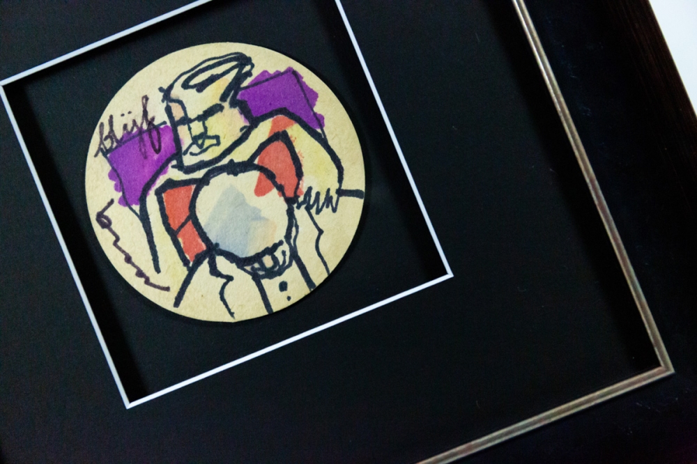 Een bierkaartje met origineel artwork van de hand van Herman Brood. Mooi ingekaderd in een apart uitziende lijst. De bierkaartjes zelf zijn 10cm op 10cm.