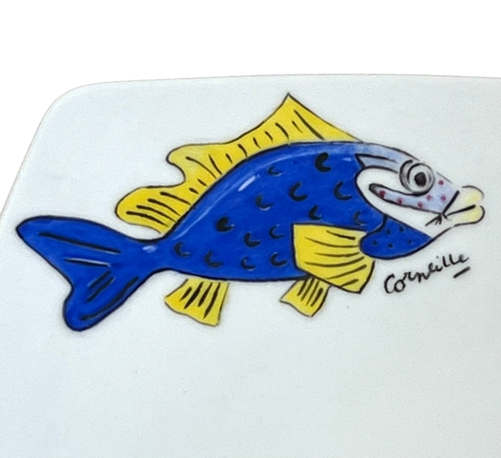Schitterend bord "Poisson" handgeschilderd door het keramiekatelier van Corneille (1922-2010) dat bij zijn overlijden in 2010 werd opgeheven. Met de vermelding op de achterkant: Exclusief voor Schana B Gallery - Afmetingen: 29,5 x 29,5 cm - Hoogte: 2,5 cm - Handwas Limoges porselein met meerdere toepassingen: presentatieschaal of decoratieve schaal Guillaume Corneille was een van de stichtende leden van de Cobra-groep met Karel Appel, Asger Jorn, Christian Dotremont, Constant, Jacques Doucet, Simon Vinkenoog en Alechinsky. Beveiligde levering door UPS Cobra tentoonstelling met de grootste Amerikaanse collectie van Corneille in Miami in voorjaar en zomer 2023. De Cobra overzichtstentoonstelling in het Cobra Museum in Amstelveen is net afgelopen op 15 januari. Uitbrengen van een Cobra / Corneille postzegel door Bpost in 2023 Corneille sieraden tentoongesteld in de Boghossian Stichting tot 14 mei 2023 (Ornamentum, collectie Diane Venet)