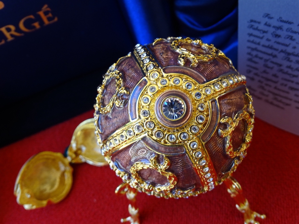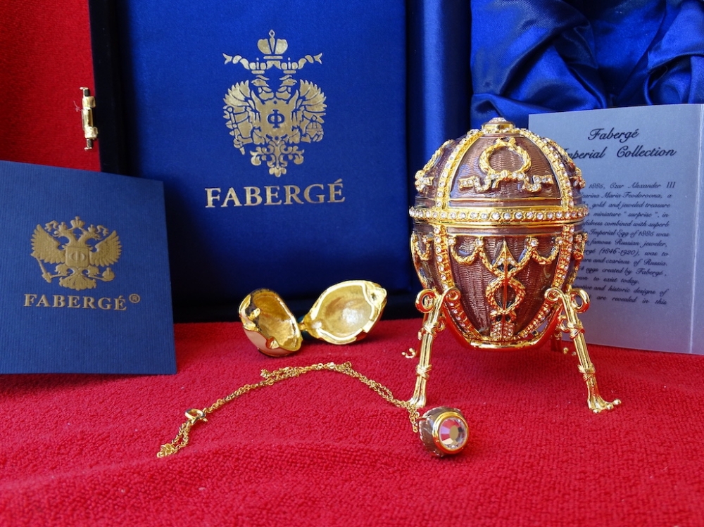 House of Fabergé - Imperial Egg - Hanger binnenin, volledig gestempeld, Certificaat van echtheid inbegrepen - Emaille Imperial Fabergé Ei met COA - Certificaat van Echtheid - 24 karaats gouden afwerking - Emaille Dit is een limited edition, zeer zeldzaam om te vinden emaille met een 24 karaats vergulde afwerking en meer dan 200 Oostenrijkse strass steentjes met een zeer mooie glans. Afmetingen ei en bodem ca. 9 cm, ei ca. 7 cm De familie Fabergé is afkomstig uit Frankrijk, maar werd gedwongen het land te verlaten vanwege religieuze vervolging. In de 18e eeuw verhuisde het gezin naar Rusland. Peter Carl Fabergé werd op 30 mei 1846 geboren als zoon van een goudsmid. Na in de leer te zijn geweest bij verschillende meester-zilversmeden in Duitsland, Frankrijk en Engeland, keerde Peter Carl Fabergé terug naar St. Petersburg als een zeer ervaren vakman. In 1885 schonk Peter Carl Fabergé het eerste keizerlijke ei aan tsaar Alexander III en werd al snel de beroemdste juwelier ter wereld. Investeren in Fabergé is net zo'n goed idee als investeren in goudstaven of zelfs investeren in de kunst van grote kunstenaars zoals Warhol, Chillida, Roy Lichtenstein Basquiat of Banksy.