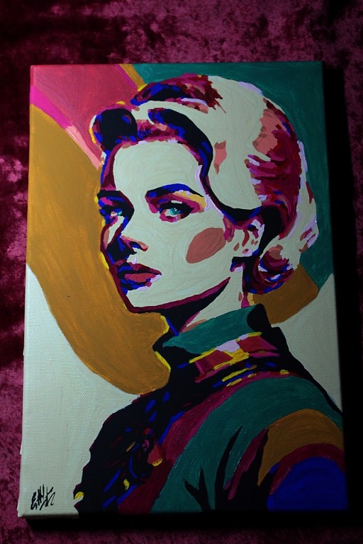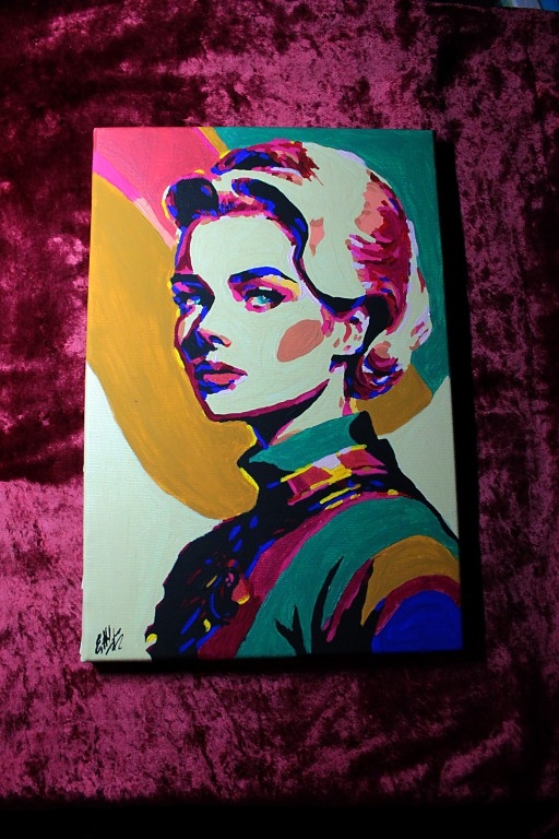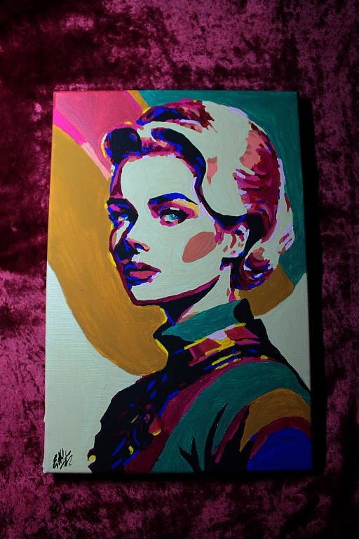 Een pop-art portret van de eeuwig mooie en verfijnde Grace Kelly. Handgemaakt. Auteurswerk, enkel exemplaar. Het kunstwerk is gemaakt op katoenen canvas met acrylverf. Het doek is gelakt en opgespannen op een houten frame. Het werk is verpakt in een doos voor een veilige levering. Maat: 20*30cm