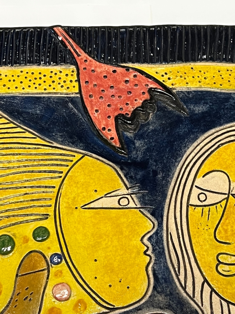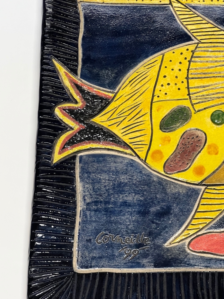 Keramiek uit 1999, geleverd met echtheidscertificaat. De handtekening van de schilder is linksonder gegraveerd. EA III/VI - Elk keramiek is een uniek stuk met verschillende reliëfs en kleuren. 62,5 x 70,5 x 4,5 cm Gereproduceerd en opgenomen in de catalogue raisonné van keramiek uit Treigny, "Corneille et la céramique, Treigny 1998-2000", Francis Delille éditeur, 2002, pagina's 94-95. Cobra 75ste jubileumtentoonstelling vanaf 1 juni in het Cobra Museum in Amstelveen. Cobra tentoonstelling met Corneille's grootste Amerikaanse collectie in Miami in voorjaar en zomer 2023. De Corneille overzichtstentoonstelling is net afgelopen op 15 januari in het Cobra Museum in Amstelveen. Uitgave van een Cobra / Corneille postzegel door Bpost in 2023. Corneille juwelen tentoongesteld in de Boghossian Stichting tot 14 mei 2023 (Ornamentum, Collectie Diane Venet)