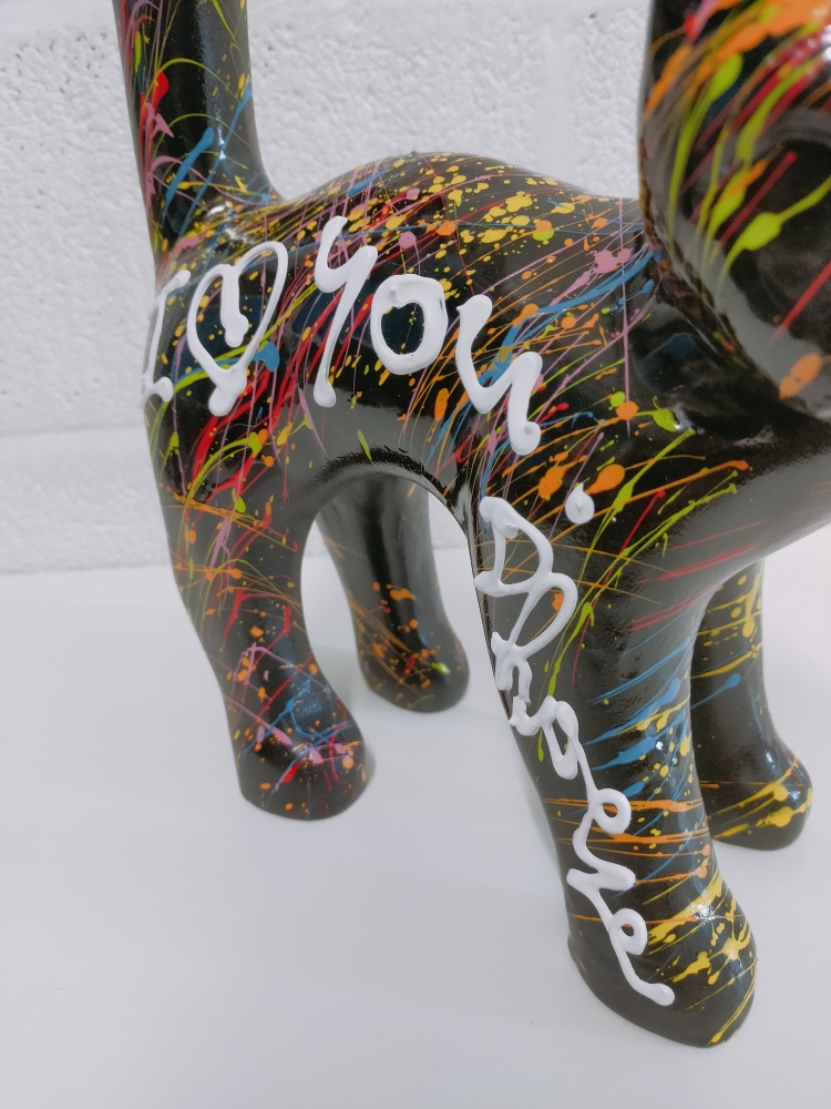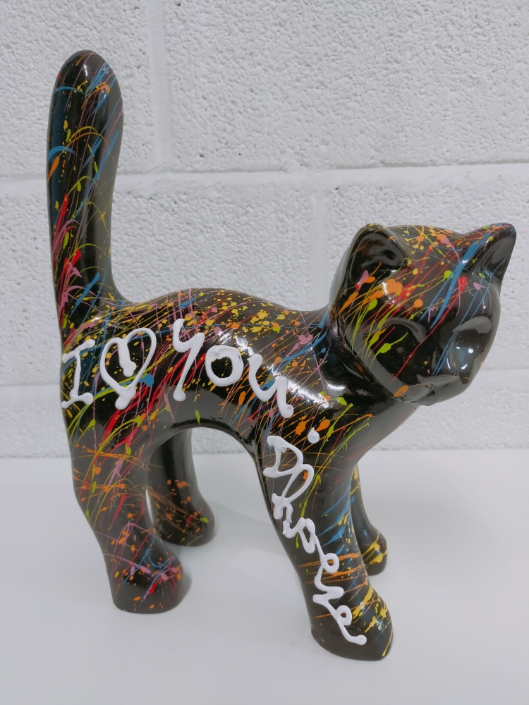 Hannes D'Haese - Kat i love you Handgesigneerd Met echtheidscertificaat Perfecte staat Kunsthars Rechtstreeks van de kunstenaar Beperkte oplage Hannes D'Haese is een Belgische kunstenaar bekend om zijn sculpturen.