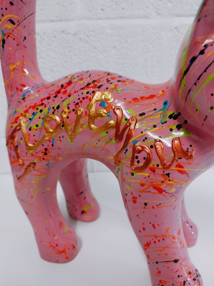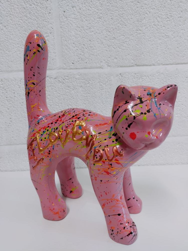 Hannes D'Haese - Kat i love you Handgesigneerd Met echtheidscertificaat Perfecte staat Kunsthars Rechtstreeks van de kunstenaar Beperkte oplage Hannes D'Haese is een Belgische kunstenaar bekend om zijn sculpturen.