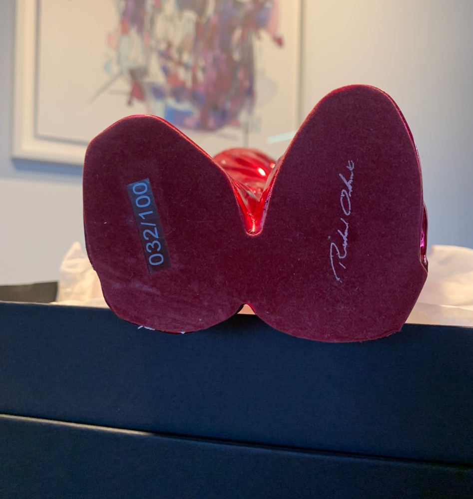 Gelakt harssculptuur (Richard Orlinski, 2013) Afmeting 36 cm hoog Beperkte oplage van 100 exemplaren Werk gesigneerd en genummerd, stuk 32/100 Richard Orlinski is een hedendaagse Franse popartiest. Hij maakt zijn gedurfde en kleurrijke sculpturen volgens zijn Born Wild© filosofie; om positief te leven door te vechten tegen elke aangeboren negativiteit. Onder invloed van Jeff Koons, Takashi Murakami en Robert Indiana gebruikt Orlinski populaire iconografie, bijvoorbeeld schedels, King Kong en Superman in glanzende, monochrome werken gemaakt van industriële materialen zoals steen, marmer of brons. Orlinski, geboren op 19 januari 1966 in Parijs, woont en werkt in Parijs.