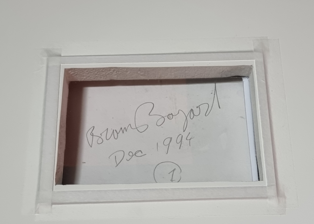 Mixed media werk van Bram Bogart uit 1994 Gouache + materie op hardboard Gesigneerd (rectot en verso), gedateerd (reto en verso) en genummerd (verso) Ingelijst in een plexibox (Het werk kan bezichtigd worden op afspraak)