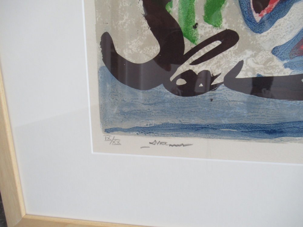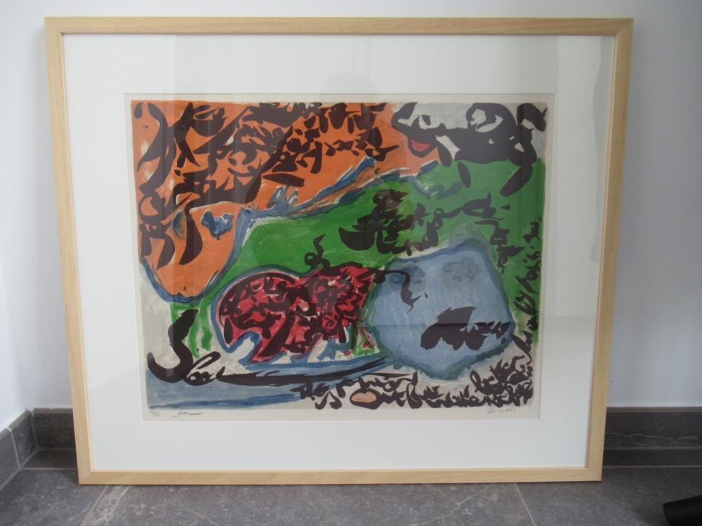Zeer leuke & typische CoBrA lithografie van Christian Dotremont & Mogens Balle. Komt uit het portfolio Un match et avant et aprés en is Romeins genummerd op 20. Door beide artiesten met de hand gesigneerd. recent opnieuw ingekaderd