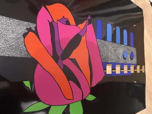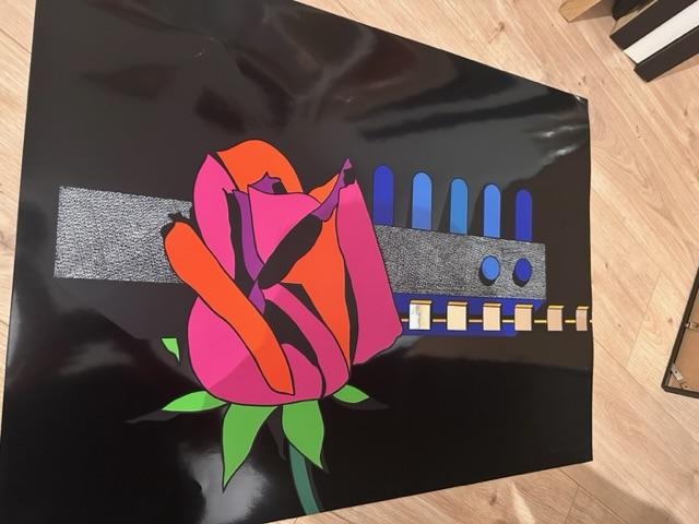 Prachtige zeefdruk op glanzend zwart papier. In zeer goede staat. Wel een klein deukje (zie fotos). De vierkantjes zijn verhoogt. gesigneerd en genummerd op 150 exemplaren. Gedrukt door Beka-Screen Paul Van Hoeydonck (Antwerpen, 8 oktober 1925) is een Belgisch kunstenaar. Hij hield zich onder andere bezig als beeldhouwer, schilder, tekenaar, collagekunstenaar en graficus.