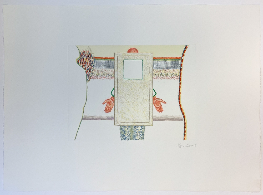 Zeer mooie kleurenets van Roger Raveel. Afmetingen ets: 295 x 395 mm. Dit is exemplaar genummerd 47/100. Zie grafisch oeuvre nummer 258 op pagina 204. Met echtheidscertificaat uitgegeven door ART-Gallery.be, galerij van Roger Raveel. Werk in perfecte staat.