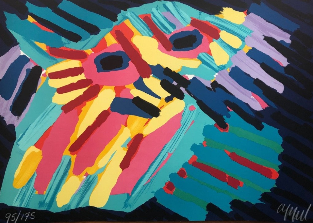 uit the night sky as it is forever 1979 Lithografie op Arches papier niet ingelijst Gesigneerd in wit potlood en gemarkeerd met 95/175 Karel Appel is een van de grondleggers van de CoBrA-beweging in de jaren vijftig. Later ontpopte Appel zich als een van de belangrijkste moderne kunstenaars van de 20e eeuw vanwege zijn kleurgebruik. Appel bevindt zich in de collecties van talloze musea wereldwijd.