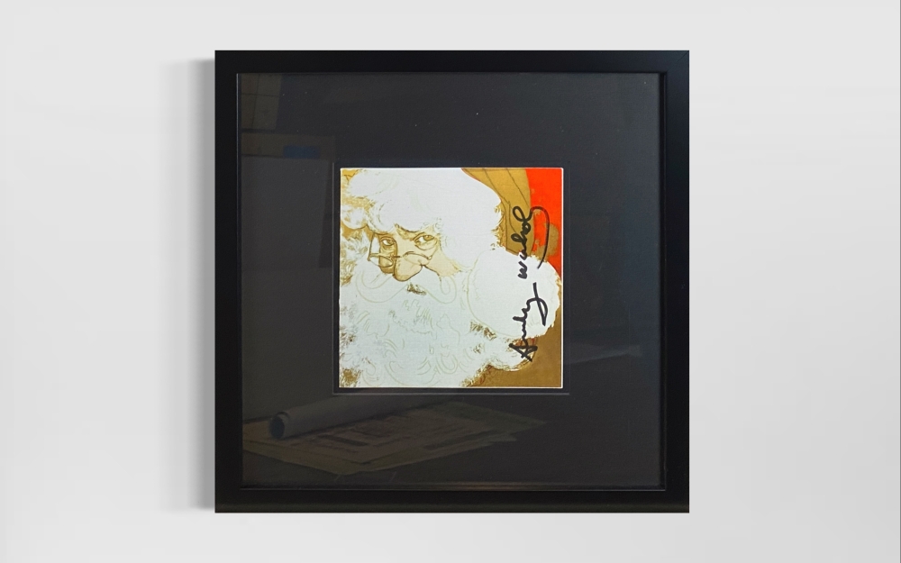 Gesigneerde uitnodiging Santa Claus door Amerikaans pop art kunstenaar Andy Warhol. Hand gesigneerd door de kunstenaar. Professioneel ingelijst. Verzekerde verzending alsook ophaling mogelijk.