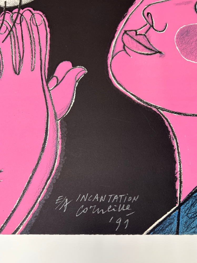 Zeldzaam en mooi werk gesigneerd, getiteld en gedateerd door de hand van de kunstenaar onderaan. Kunstenaarsexemplaar E/A met Atelier Corneille stempel op de achterzijde. Tentoonstelling ter gelegenheid van 75 jaar Cobra vanaf 1 juni in het Cobra Museum in Amstelveen. Opening van het Cobra depot in Antwerpen. Uitgave van een Cobra / Corneille postzegel door Bpost in 2023. Originele litho van de schilder Guillaume Corneille (1922-2010), geboren in Luik uit Nederlandse ouders en stichtend lid van de Cobra-groep met Karel Appel, Asger Jorn, Constant, Dotremont en later Alechinsky en Jacques Doucet. Totale afmetingen : 50 x 65 cm - Perfecte staat - Veilige verzending met UPS