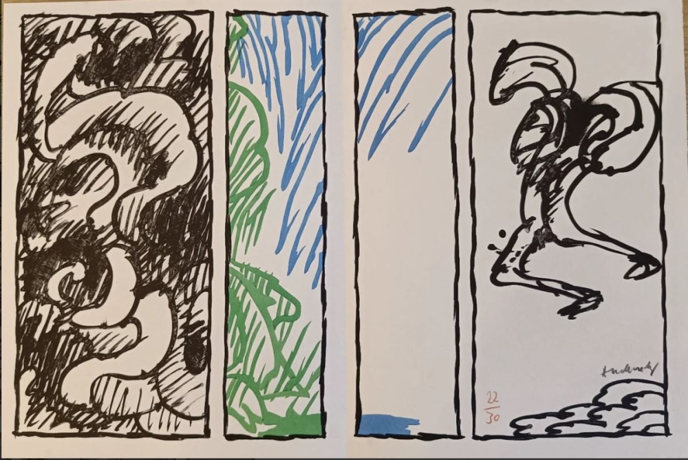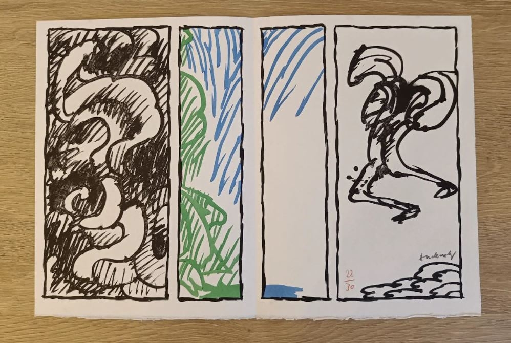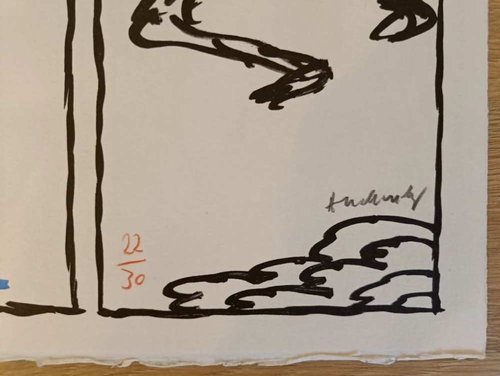 - Rare Lithograph - 1979 - Supplemented with watercolor by the artist (green and blue part) - Arches paper printing - Very limited - only 30 pieces - Hand signed and numbered (22/30) - Dimensions: 33 x 49 cm - Not framed - Work will be sent registered and insured