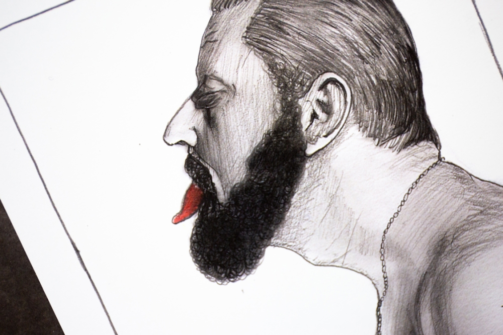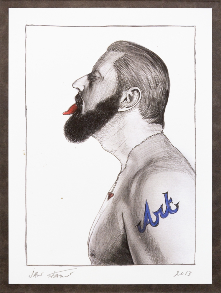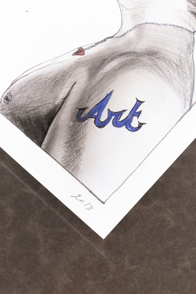 Grafisch werk van Jan Fabre's bijdrage aan de "Museum to Scale"-exhibitie van Ronny Van de Velde uit 2013: "Sex", "Love" en "Art". Het werkje is gemonteerd op een zwarte kartonnen plaat van 35cm op 50cm. Het kaartje zelf is 12,5cm op 17cm.