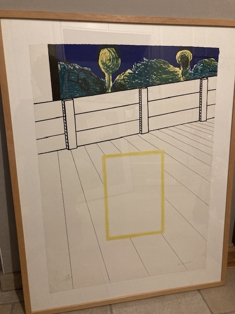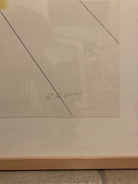 Een van de eerste lithos van raveel, gedrukt door Piet Clement en uitgegeven door prent 190. Groot formaat, zwevend ingelijst. Enkel op te halen door formaat en risico op glasbreuk. Typische raveelkenmerken in de litho.