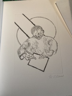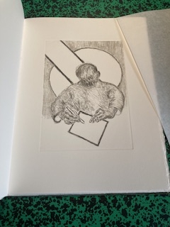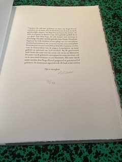 Zeldzame nog complete bibliofiele uitgave met 5 gedichten van raveel. Het betreft een van de 12 Romeins genummerde uitgaves met 1 ets in frontispice en 3 (ipv 2) etsen in suite (losbladig). 2 ervan zijn gesigneerd en genummerd. Het boek is op naam gedrukt en dus uniek.
