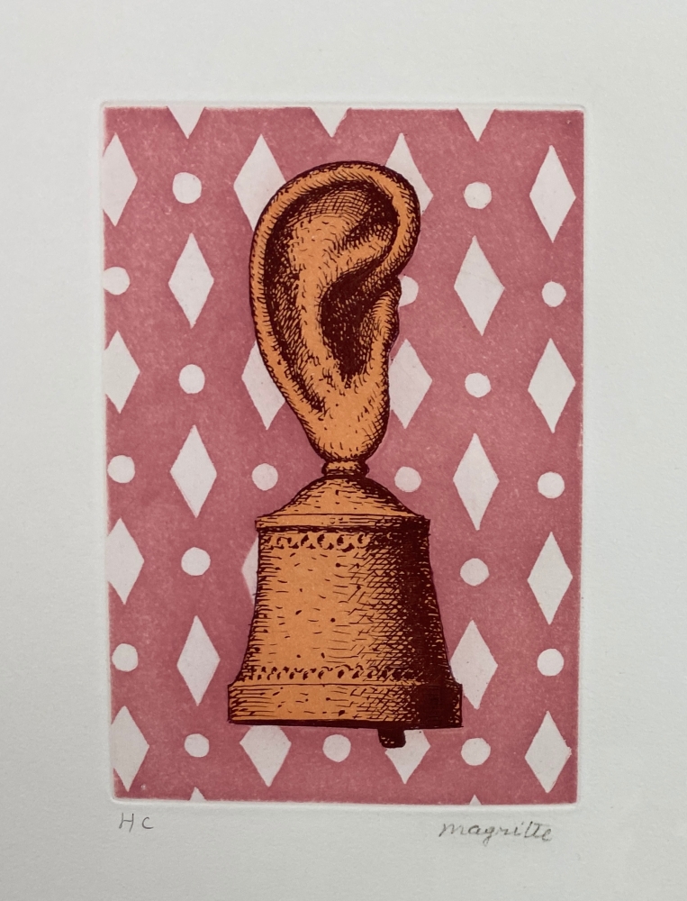 Originele ets door René Magritte uit 1968 op Vélin de Rives papier. De ets werd met de stempel gesigneerd en draagt ook onderaan een reliëf stempel Atelier René Magritte, gravure originale. Professioneel ingelijst. 282 x 232 mm (Ets) 420 x 370 mm (Kader) Verzekerde verzending alsook ophalen mogelijk.