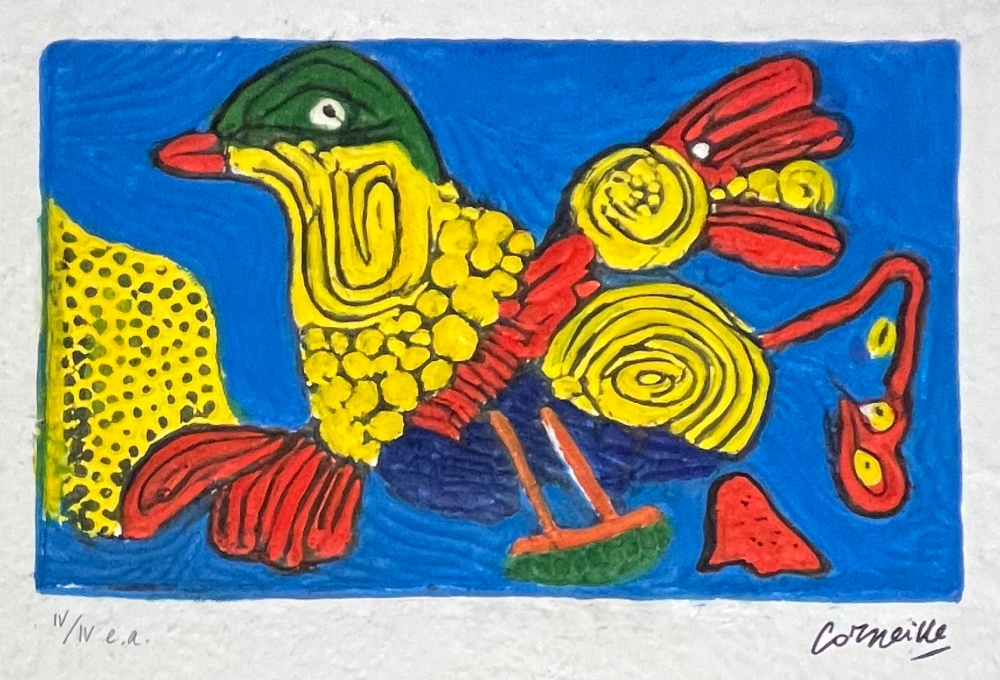38 x 48 cm - exemplaar EA 4/4 - handelseditie van 40 exemplaren. Aqquagravure gebaseerd op een reliëf gemaakt door Guillaume Corneille in 1977. Jubileumuitgave ter gelegenheid van de 100e geboortedag van de schilder, geproduceerd door een van de historische galeries van de schilder, L'Estampe. Stempelhandtekening. Aquagravure is een reliëfgravure, een complexe ambachtelijke techniek waarbij ter plaatse in grote vaten perkamentpapier wordt vervaardigd.