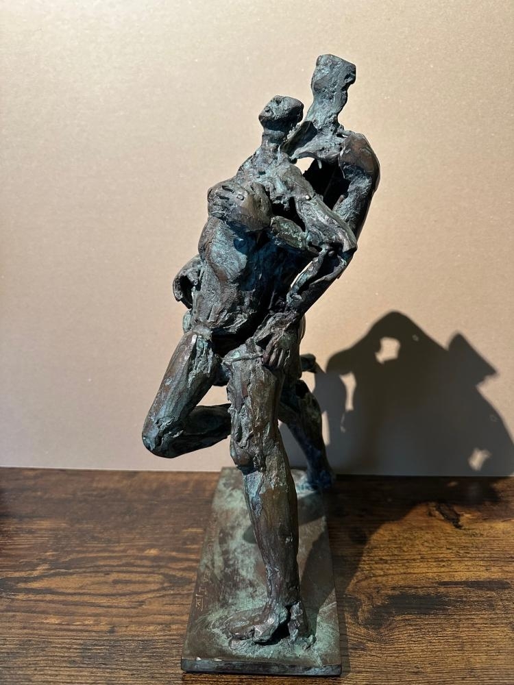 Bronzen sculptuur van Jan Demarets. Aangekocht vóór 2011. Er zijn slechts 4 exemplaren. Dit is I/IV. Het stelt een dansend koppel voor. Er schuilt heel wat symboliek in het werk, in de houding van de lichamen, in de spanning van de ledematen, in het onzichtbare punt waarnaar de sculptuur verwijst.