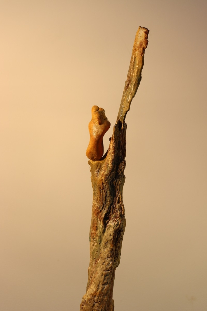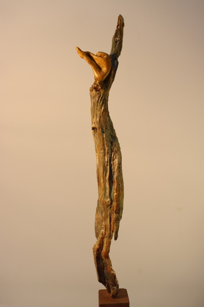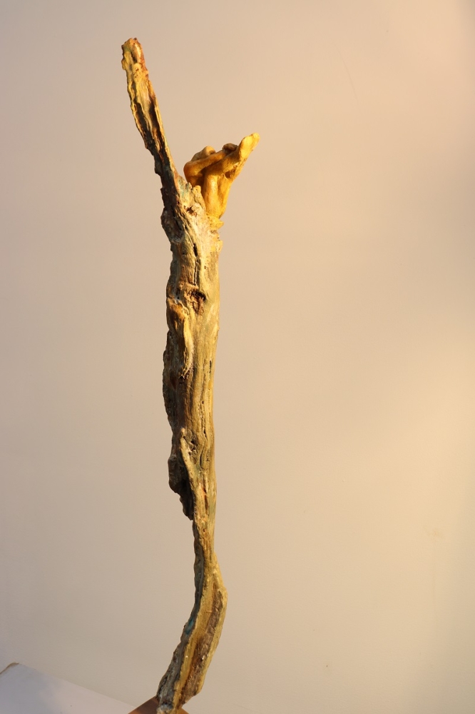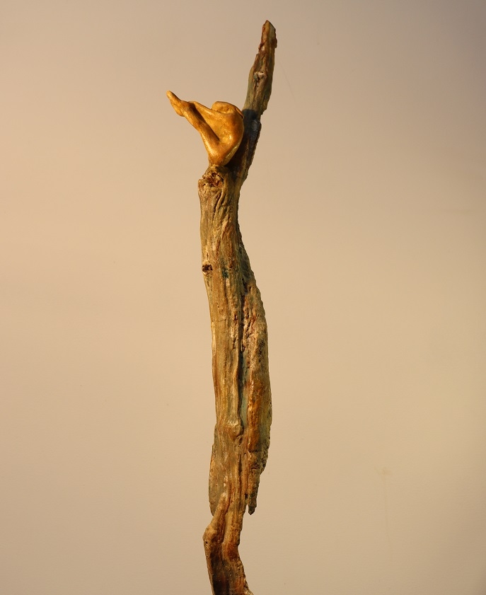 Rebalance Mixed media van hout en acrylic one, een natuurlijk materiaal om hout te verduurzamen en te versterken, zodat hout versteend wordt. Chantalle Smeets is na 4 jaar WIK (wet inkomensuitkering kunstenaar) in Maastricht Nederland, 20 jaar actief als professioneel kunstenaar. Samen met Martiene Stevens (haar partner en ook kunstenaar), beheren zij Kunsthuis Trobar Riemst (B). Chantalle Smeets heeft een geheel eigen stijl ontwikkeld, Hetgeen zichtbaar wordt in haar beelden van brons, steen, keramiek en hout. Haar inspiratie bron is de natuur. Zij heeft geëxposeerd bij diverse galeries en kastelen (ook beeldentuinen) in Nederland, België en Spanje en verkoopt in heel Europa, Amerika en de Canarische eilanden.