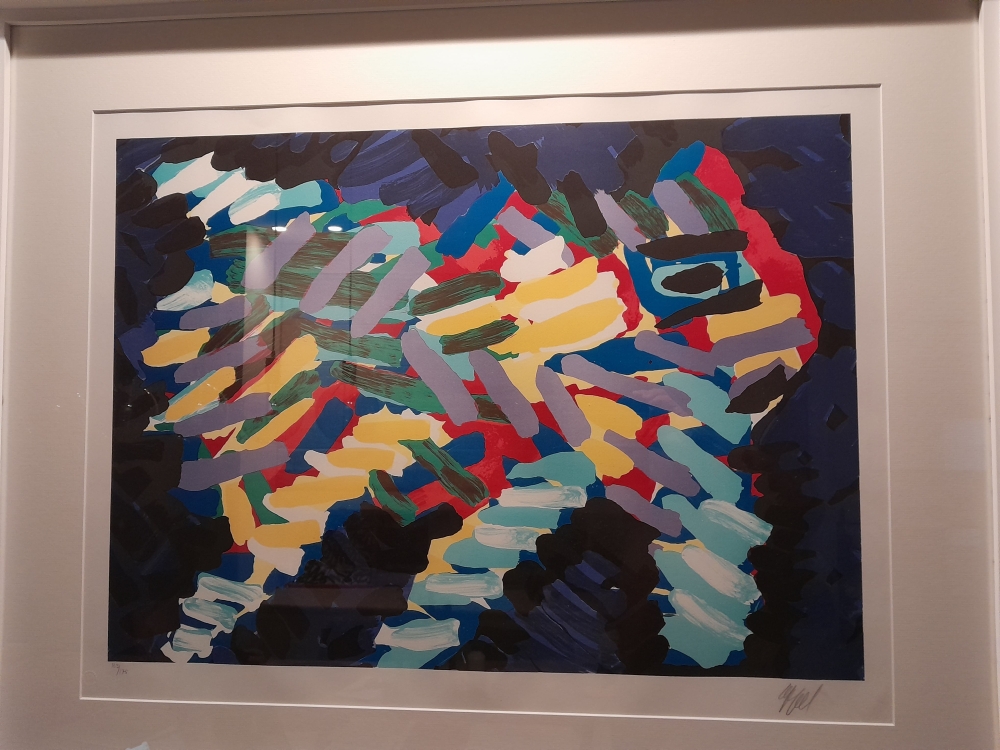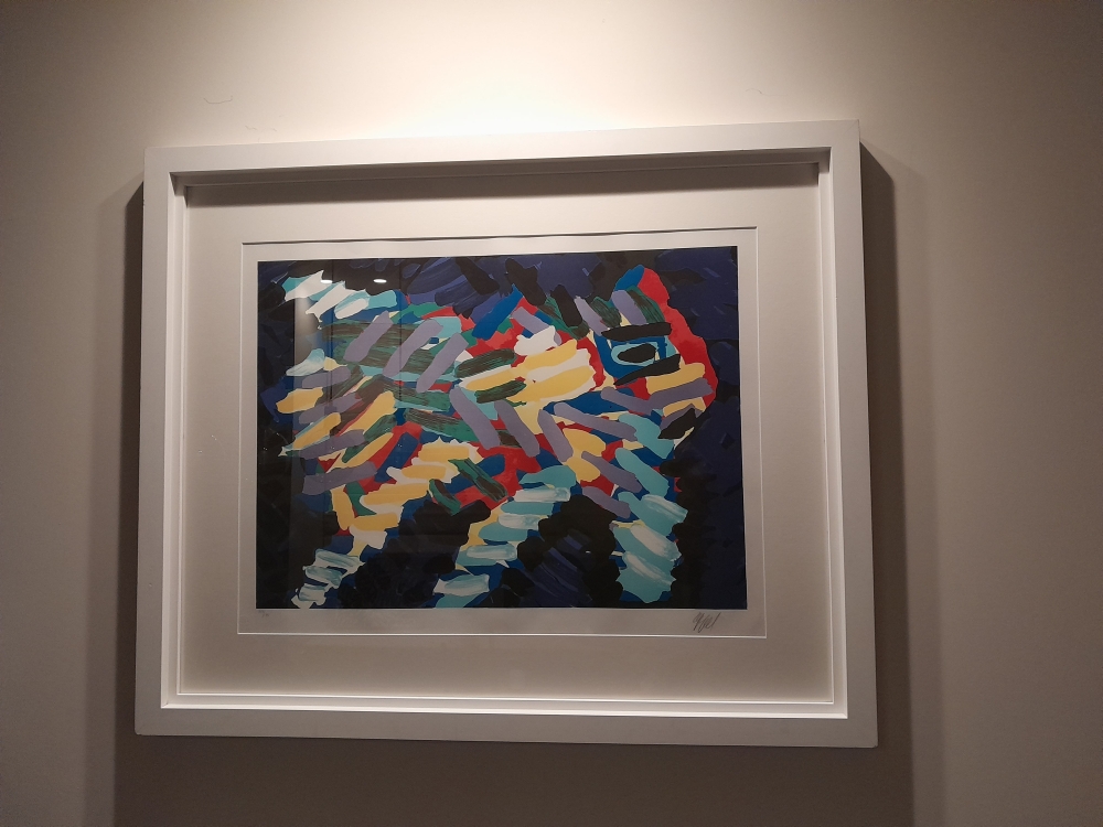Karel Appel, zeer mooi gekaderd werk. Kleuren litho met potlood handtekening in rechter hoek en genummerd 169 van 175. Werk is genaamd Ten By Appel uit 1978. Dit werk is bovendien gestempeld Duma, New York.