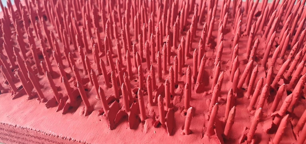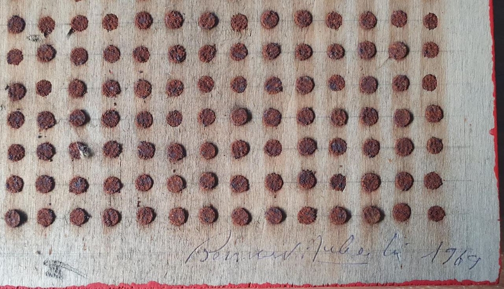 Origineel werk (spijkers, hout en acrylverf) van Bernard Aubertin. Het werk is achteraan gesigneerd en gedateerd. Het werk is verpakt in een kleine houten kist en is vergezeld van een attest uitgegeven door het archief van Bernard Aubertin.