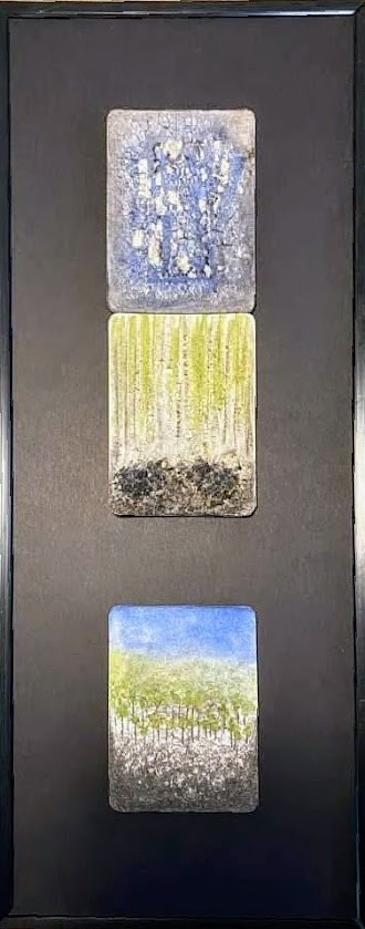 Aquarel op 3 bierviltjes, ingekaderd met passe-partout - Siel gebruikt haar kunst als creatieve uitlaatklep om medische trauma's te verwerken. Dit werk heeft ze gemaakt toen ze na een intense periode uit het oog was verloren waar ze gelukkig van wordt en waar ze energie van krijgt: zorgeloos creëren! Ze moest even een paar stappen terugnemen om intuïtief te creëren met haar handen, niet met haar hoofd. Op die manier vond ze zichzelf terug en kon ze weer focussen. Siel is van opleiding architect. Ze heeft haar artistieke passie uitgebreid naar verschillende kunstvormen, waaronder het ontwerpen van design juwelen. Ze heeft op jonge leeftijd borstkanker gekregen. Hierdoor weet ze diepgaande emotionele betekenissen op meesterlijke wijze in al haar creaties te verwerken, die niet alleen visueel indrukwekkend zijn, maar dus ook een emotionele resonantie dragen.