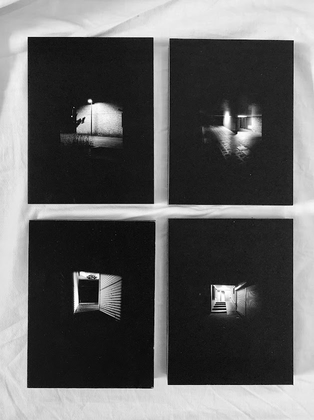Awagami Bamboo print gemonteerd op mdf - 4 stuks van 16 cm x 12 cm - Deze werken maken deel uit van de tentoonstelling 'Route Runkst' waarmee Karolien een impressie van haar wijk toont aan de hand van intieme beelden, gemaakt tijdens wandelingen met haar hond Buddy. De set foto's doet denken aan 'kokerzicht', een vorm van slechtziendheid die relatief vaak voorkomt onder de cliënten van de blindengeleidehondenschool. Karolien behaalde in 2002 haar Master in de Fotografie. Sindsdien is ze altijd blijven fotograferen. Ze stelde onder andere tentoon in de Velinx in Tongeren en in de abdij van Herckenrode. Momenteel volgt Karolien les in het projectatelier van Petrus Vanlessen om haar kunstenaarschap nog meer vorm te geven.