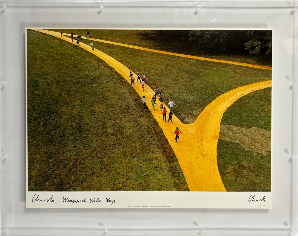 Gesigneerde en genummerde editie door Christo. Gesigneerd in stift, genummerd in potlood; 59/200. Professioneel ingelijst in plexi kader. Verzekerde verzending alsook ophaling beide mogelijk.