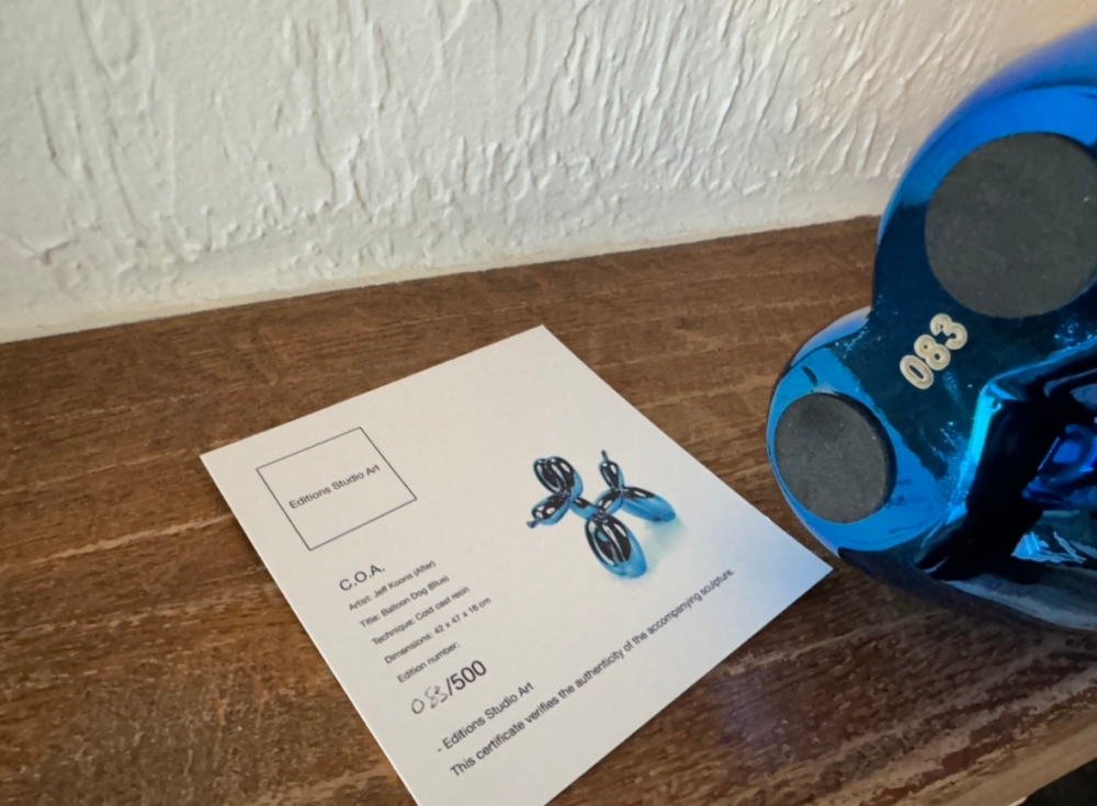 Resin sculpture after Jeff Koons, published by Éditions Studio. Only 500 pieces were produced. This is the first edition and sold out within minutes. The statue comes without any packaging but is accompanied by the original certificate. The box was damaged by water and was thrown away. The statue is in very good to excellent condition. Very safe shipping and no minimum price Very solid investment in this day and age. Rare and sought after orange color. Safe, fast and careful shipping.