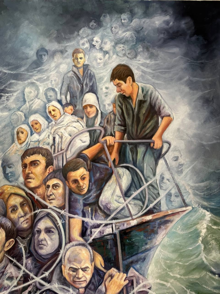 Escaping from injustice, war, or other hardships in the hope of finding a better life. Historically, this concept has been associated with the idea of seeking refuge or a new beginning by embarking on a perilous journey across the sea. This theme has been depicted in various literary works and cultural narratives, often symbolizing the pursuit of freedom and a fresh start. When the people were forcibly displaced and war broke out in their homeland He was forced to escape and experience dangers through death boats Children, women and men, waves and death do not separate them