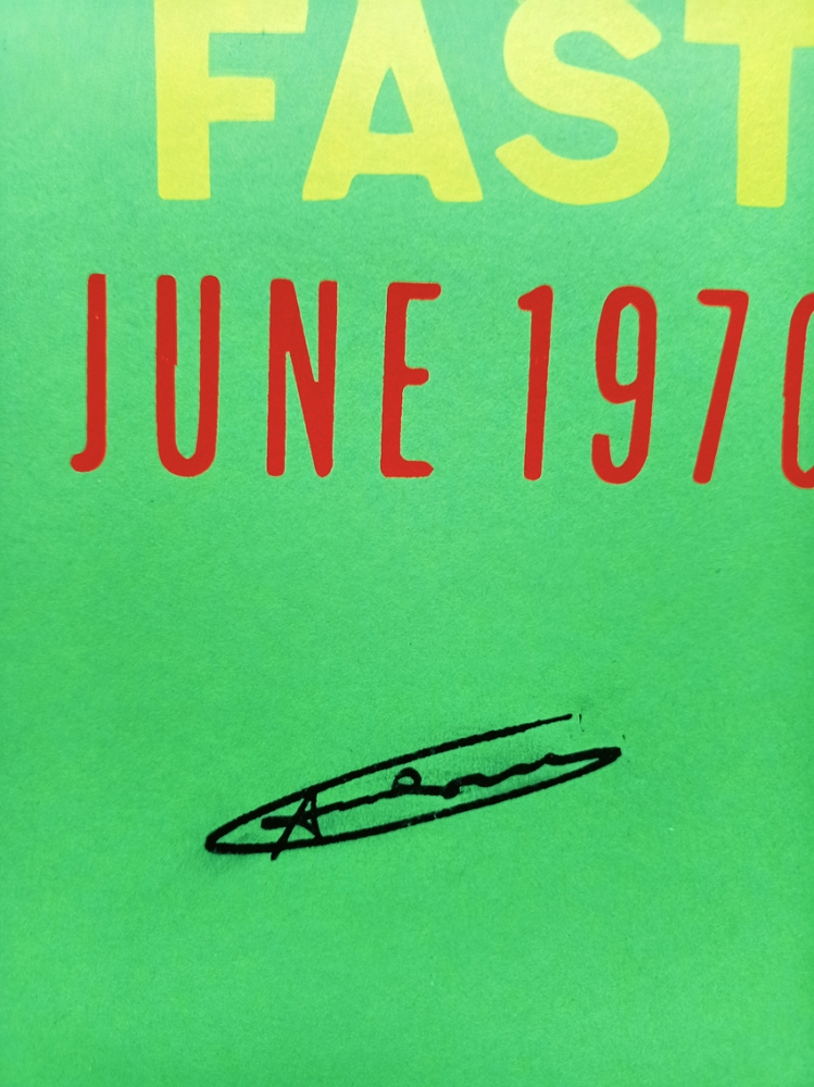 Andy Warhol - Zeefdrukposter - Brillo Soap Pads - Gestempelde handtekening (#0344) Driekleurenzeefdruk op dik groen kwaliteitspapier van 300gr/m2. Uitgegeven door het Pasadena Art Museum, Californië voor de tentoonstelling "Andy Warhol: Pasadena Art Museum", 12 mei - 21 juni 1970. Afmetingen 70x100cm. Een van de zeldzame zeefdrukposters met de originele copyrightstempel op de achterkant: © Pasadena Art Museum 411 West Colorado Blvd. Pasadena, CA 91105. Uit de gelimiteerde editie en in goede staat, met enkele tekenen van ouderdom rond de randen. De foto's maken deel uit van de omschrijving, zie foto's om zelf te beoordelen in algemene staat. Wordt door mij veilig verpakt en wereldwijd verzonden.