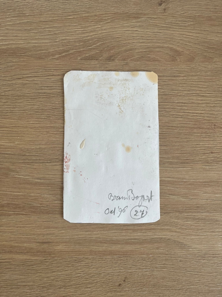 Originele, unieke gouache op papier/karton. Werd oorspronkelijk uitgegeven samen met een boekje "Optimiste". Het boekje wordt samen met het werk afgeleverd. Gesigneerd recto "BB" en verso "Bram Bogart" Wordt aangetekend en met Track & Trace verzonden