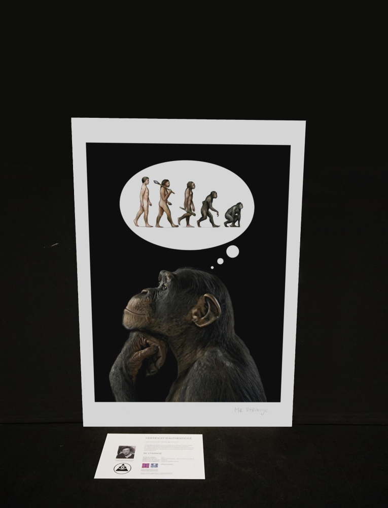 Mr Strange (Jean-Marie Gitard) est un artiste français maniant le surréalisme avec une certaine dérision. Regard sur un Monde, la tête à l'envers. Artiste côté et confirmé, il est présent dans de nombreuses collections en France et à l'étranger. Homo Stupidus - 2020 Giclée sur papier Hanhemühle. Exemplaire numéroté 8/30 et signé à la main dans la marge blanche. Envoyé avec un certificat d'authenticité. Dimension totale: 70 x 50 x 0,1 cm. Neuf. Envoyé par transporteur dans un tube adapté.