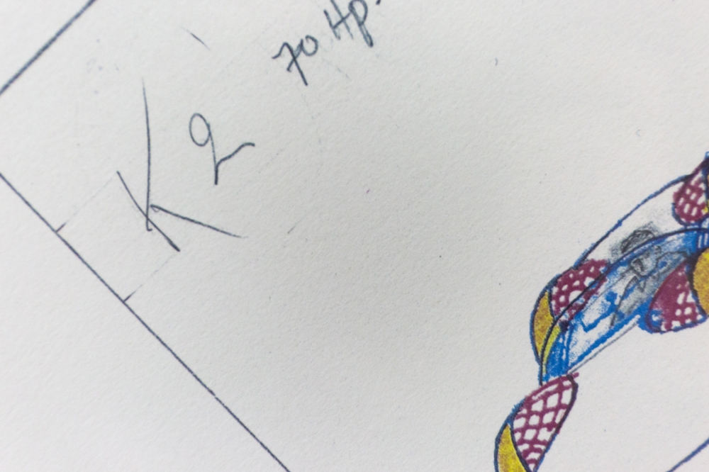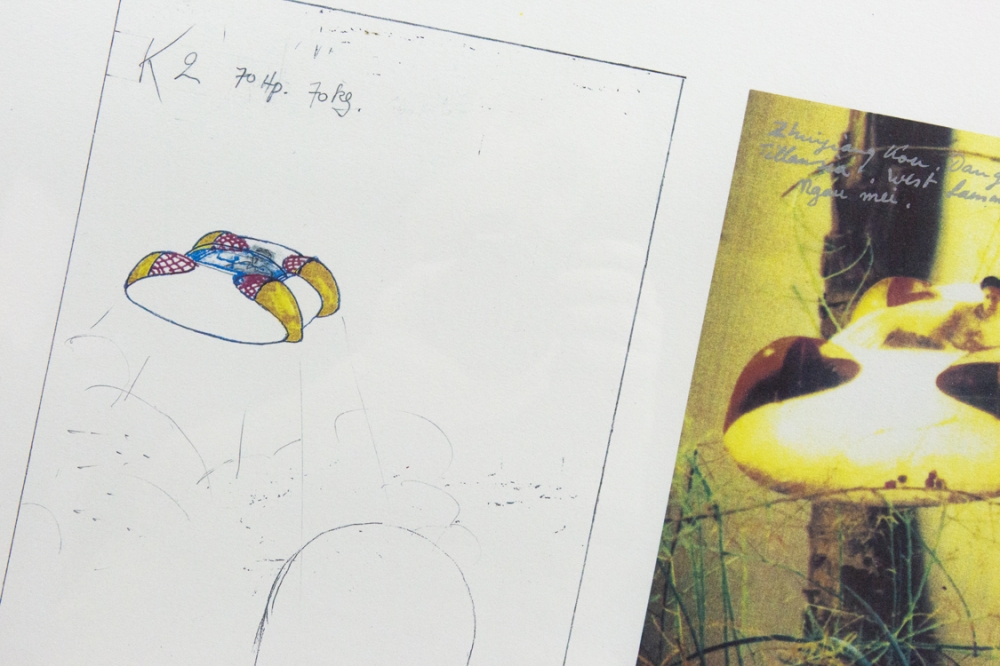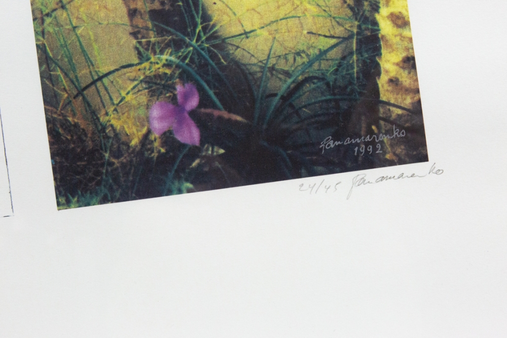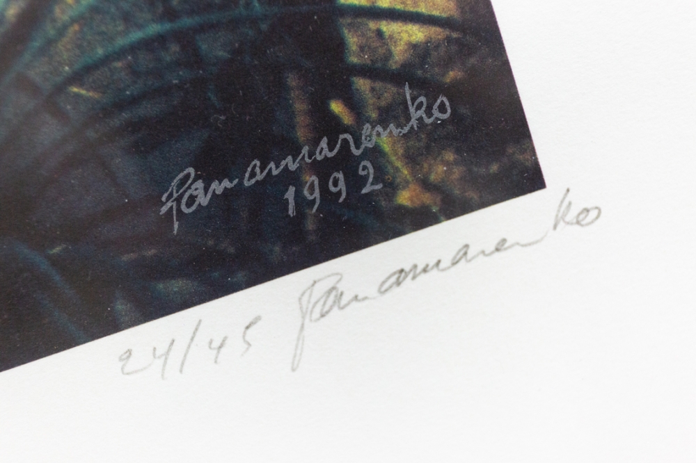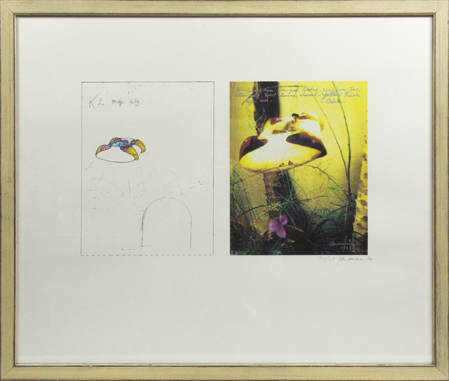 Een met de hand gesigneerde en genummerde offset van Panamarenko K2. Hierop staat de K2 jungle flyer in actie afgebeeld en zelfs bestuurd door Panamarenko.
