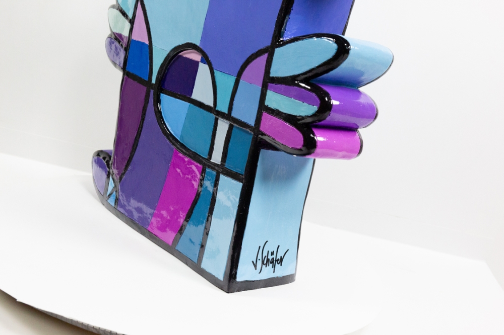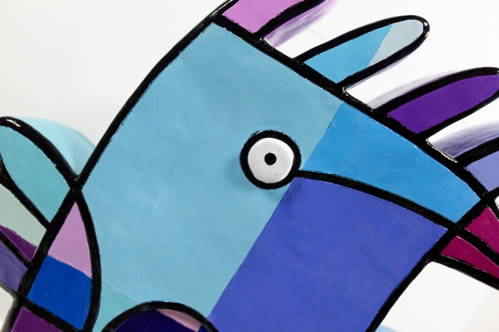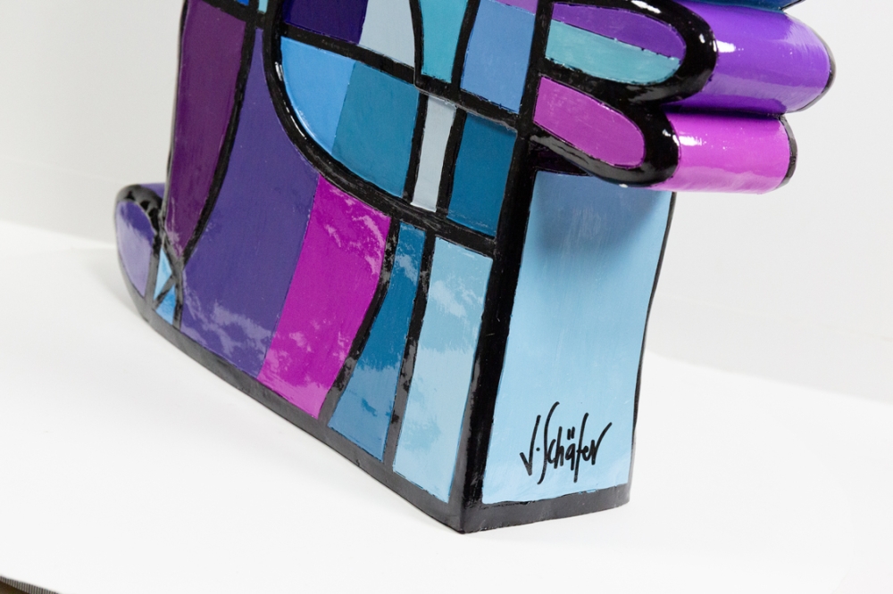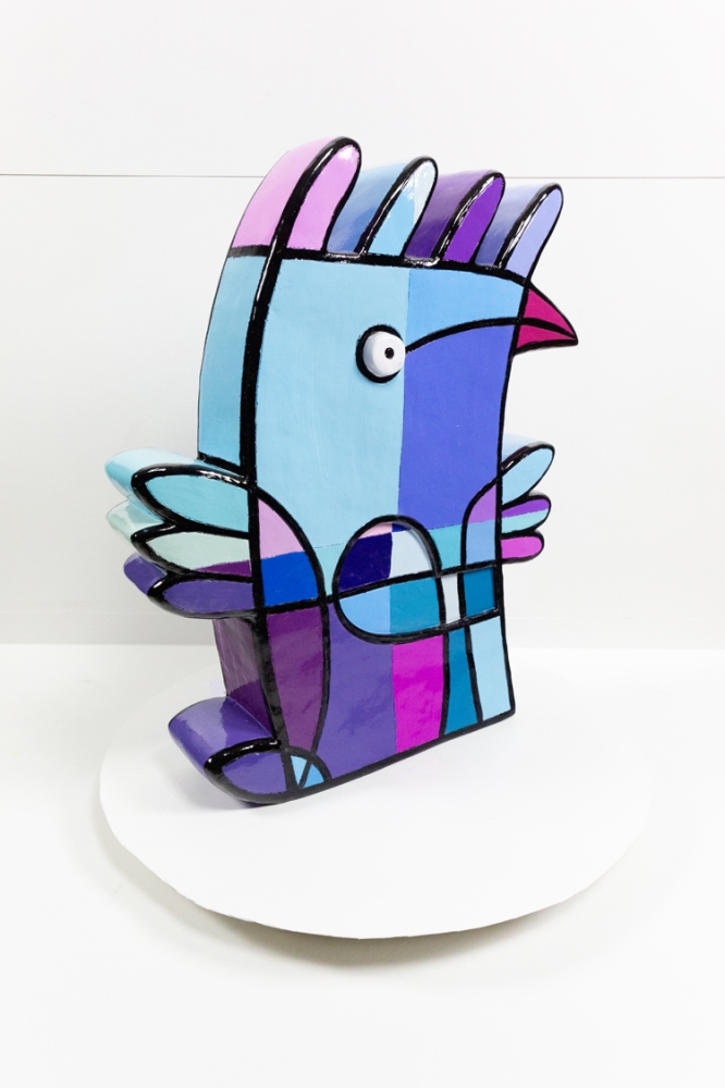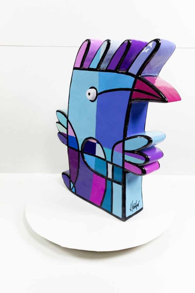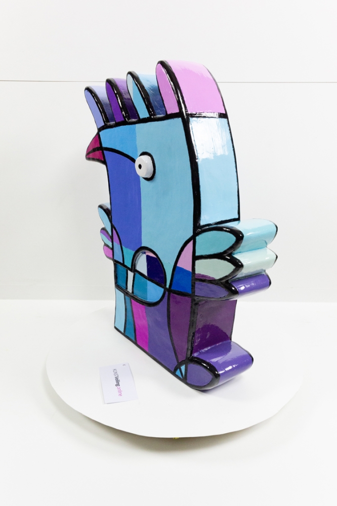Een kunsthars sculptuur van Jacqueline Schaefer, getiteld Vreemde vogel. Het werk is gelimiteerd op 50 stuks, waarvan dit het 45e exemplaar is. Met de hand gesigneerd.