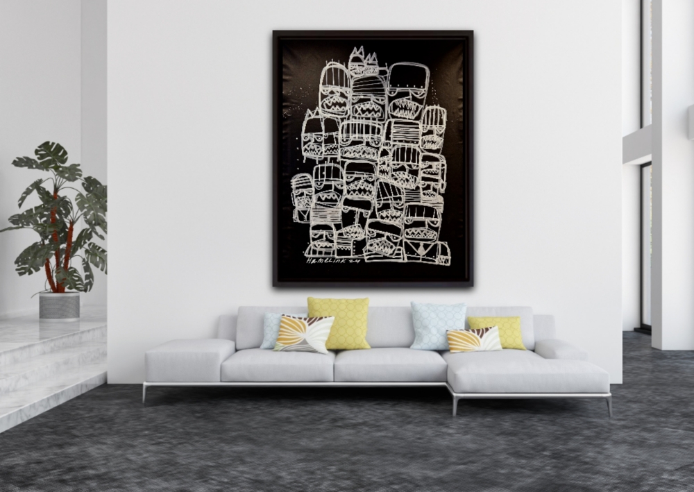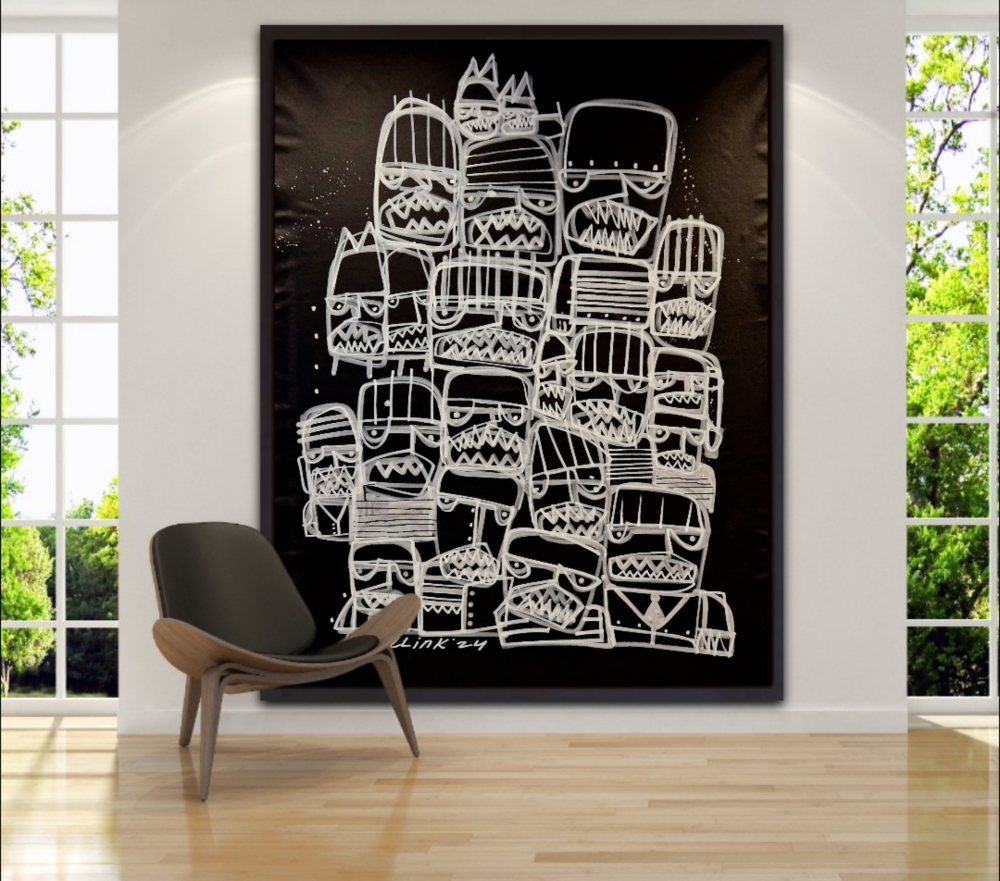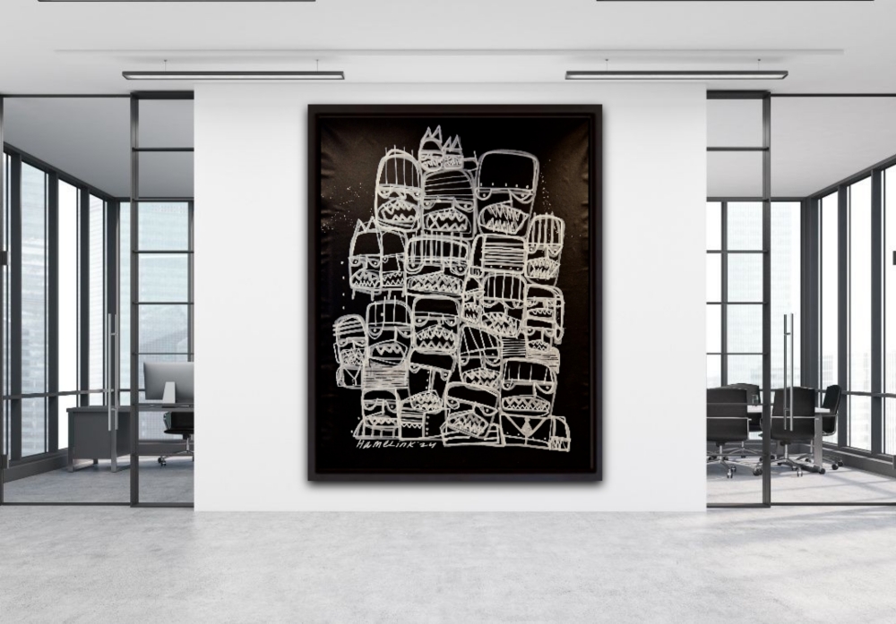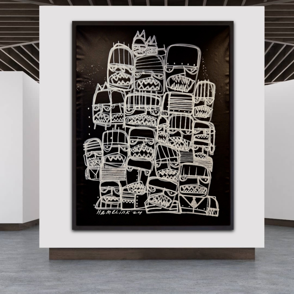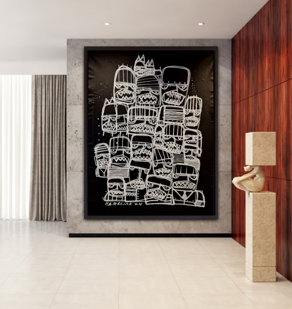 Bart Hamelink is een opkomende Nederlandse kunstenaar die internationaal steeds meer erkenning krijgt. Zijn werk wordt gekenmerkt door een unieke combinatie van moderne technieken en traditionele invloeden. Zijn kunst, die wereldwijd wordt verkocht, heeft een brede aantrekkingskracht vanwege zijn innovatieve stijl en diepgaande thematiek. Hamelink blijft groeien in populariteit en wordt gezien als een belangrijke figuur in de hedendaagse kunstscene. Dit grote schilderij van Bart Hamelink is uitgevoerd in een levendige graffiti-stijl. Met snelle, vlotte penseelstreken heeft Hamelink een dynamisch beeld gecreëerd dat verschillende emoties uitdrukt. De felle zwart witte kleuren en speelse vormen geven het werk een energieke en spontane uitstraling. Het schilderij toont een scala aan menselijke gevoelens op een krachtige en directe manier. Het schilderdoek wordt zorgvuldig opgerold en veilig in een stevige vierkante koker voor verzending. Levering is zonder spieraam ! Dit beschermt het tegen beschadiging en vermindert transportkosten. Het risico op schade wordt geminimaliseerd, terwijl de kunst veilig zijn bestemming bereikt. Elk kunstwerk wordt geleverd met een certificaat van echtheid, ondertekend door Bart Hamelink zelf, waarmee de authenticiteit en waarde van het werk worden bevestig "De afbeeldingen die u nu ziet, dienen als voorbeelden van hoe ze eruit zouden zien wanneer ze ingelijst aan de muur worden op gehangen.