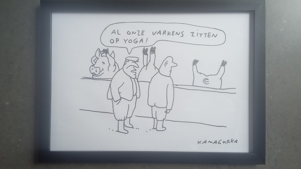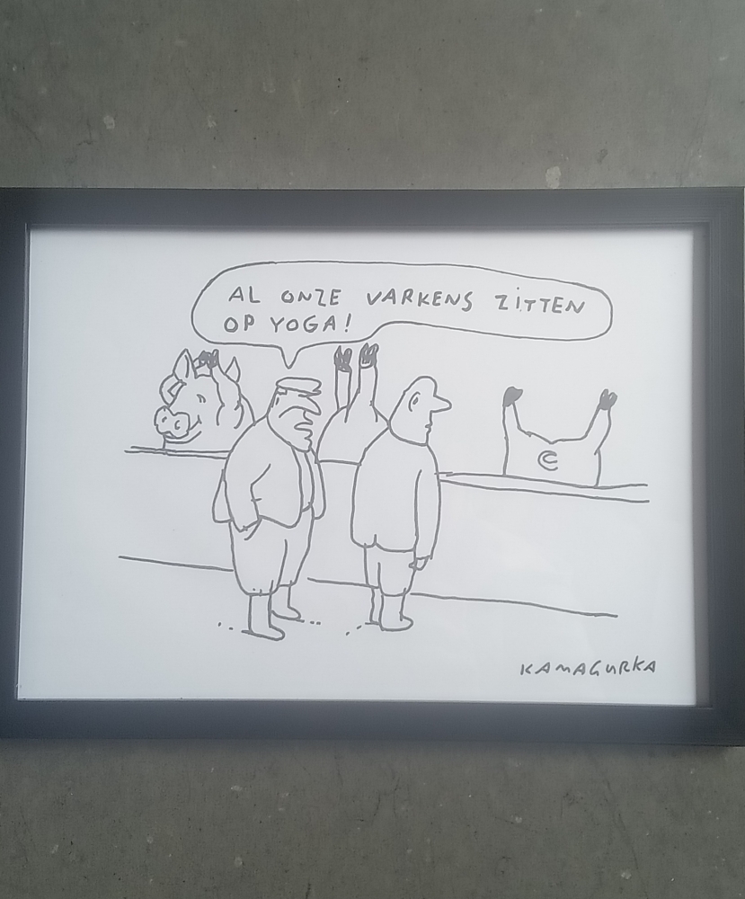 Erg leuke en originele tekening van KAMAGURKA aka Luc Charles Zeebroek Getiteld; Yoga Gemaakt in 2017 Stift op papier. A4 kreukgevoelig manga papier. Onderaan Handgesigneerd Lijst is mee inbegrepen.