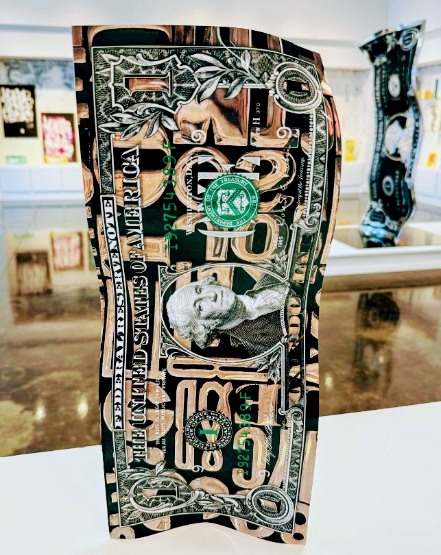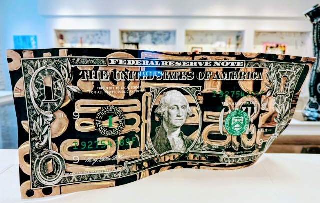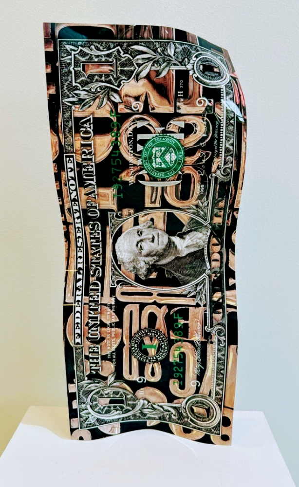 Extremely rare work limited to 100 pieces by KARL LAGASSE ONE DOLLAR CRYPTO GOLD** Atelier USA Collection - New Sculpture... Title of the work: Rare ONE DOLLAR CRYPTO GOLD Number (44/100) only 100 copies in the world. It will come with a Certificate of Authenticity from the artist Karl Lagasse. Estimate: 8000-12000 eur.. A magnificent statue. An exceptional work of lacquered aluminum by the artist Karl Lagasse. Creation in the workshop in Austin USA by the artist Karl Lagasse. Dimensions approx. 45 cm x 19 cm. Number 44/ 100 Pr. Color: black and copper Work limited to 100 copies worldwide. Signed by the artist Karl Lagasse with a original Workshop certificate Ideal for investment in art!