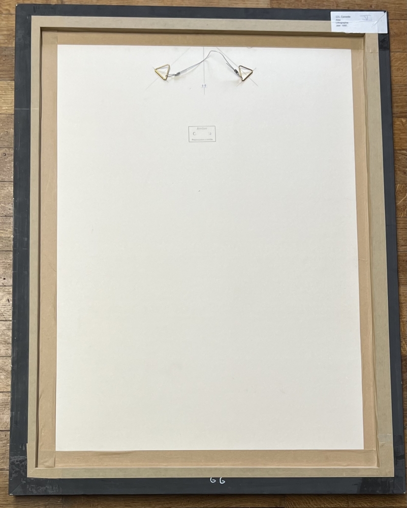 Prachtige zeefdruk gemaakt voor een muziekfestival. Aida (Aïda in het Frans) is een opera in vier bedrijven van Giuseppe Verdi, op een libretto van Antonio Ghislanzoni gebaseerd op een plot van Auguste Mariette. De première vond plaats op 24 december 1871 in het Khedival Opera House in Caïro. Guillaume Corneille verwijst naar deze eerste voorstelling in Caïro door de Egyptische piramides, en ook naar een autobiografische gebeurtenis: een persoonlijke tentoonstelling in oktober 1989 georganiseerd in het Franse Culturele Centrum in Alexandrië, waarvoor hij reisde. Onderaan gesigneerd, getiteld en gedateerd door de schilder in grafiet. Afmetingen binnen de passe partout : 53 x 44 cm. Totale afmetingen: 90 x 69 cm. De lijst dateert uit de tijd van Corneille en vertoont wat slijtage in de hoeken. Veilige verzending in een kartonnen doos door UPS. Guillaume Corneille retrospectieve in België in 2024!