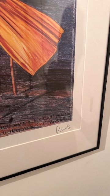 Christo Vladimirov Javacheff (Bulgaars: Христо Владимиров Явашев) (Gabrovo, 13 juni 1935 – New York, 31 mei 2020) of kortweg Christo was een Bulgaars-Amerikaans architect, beeldhouwer, installatiekunstenaar, schilder en tekenaar. Hij is vooral bekend vanwege zijn 'inpakkunst', die in nauwe samenwerking met zijn vrouw, Jeanne-Claude Denat de Guillebon, ontst Professioneel ingelijst. Zeer groot werk! Gesigneerd met origineel stukje stof