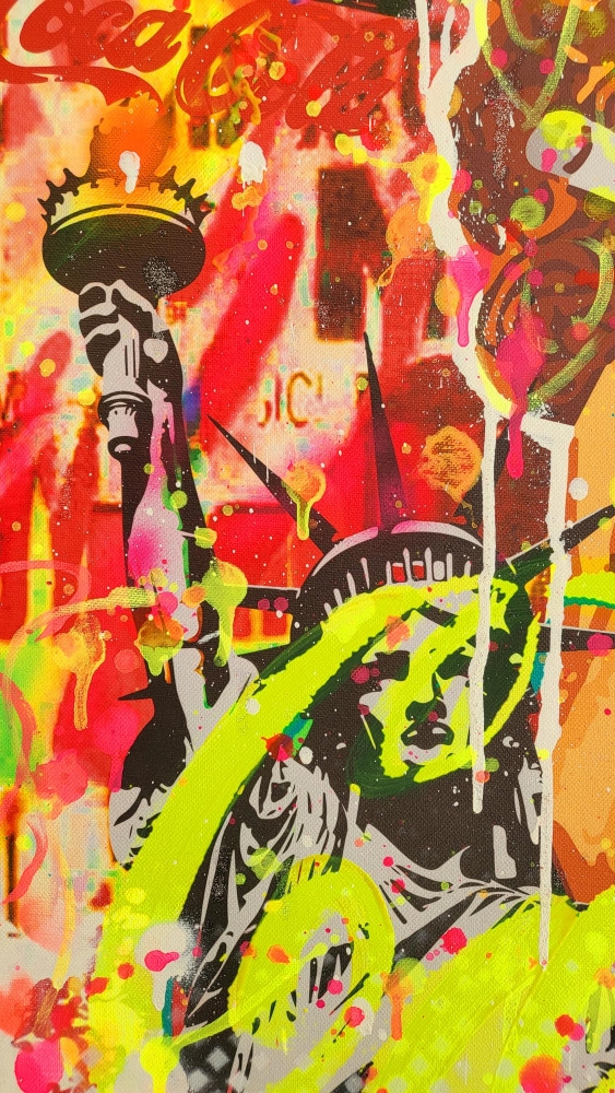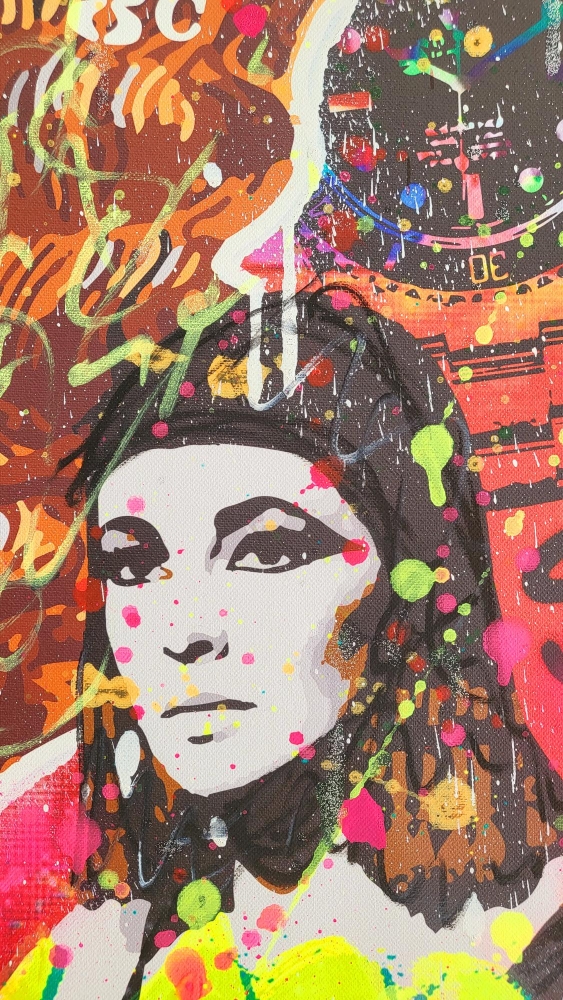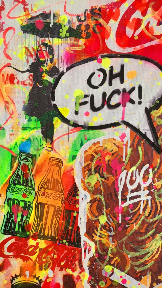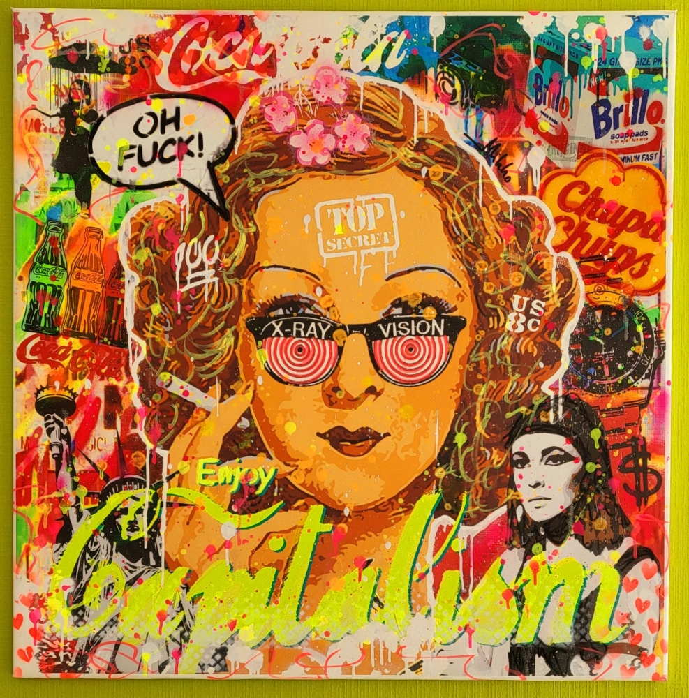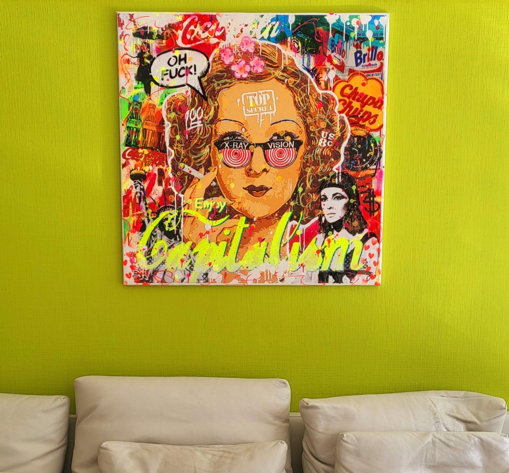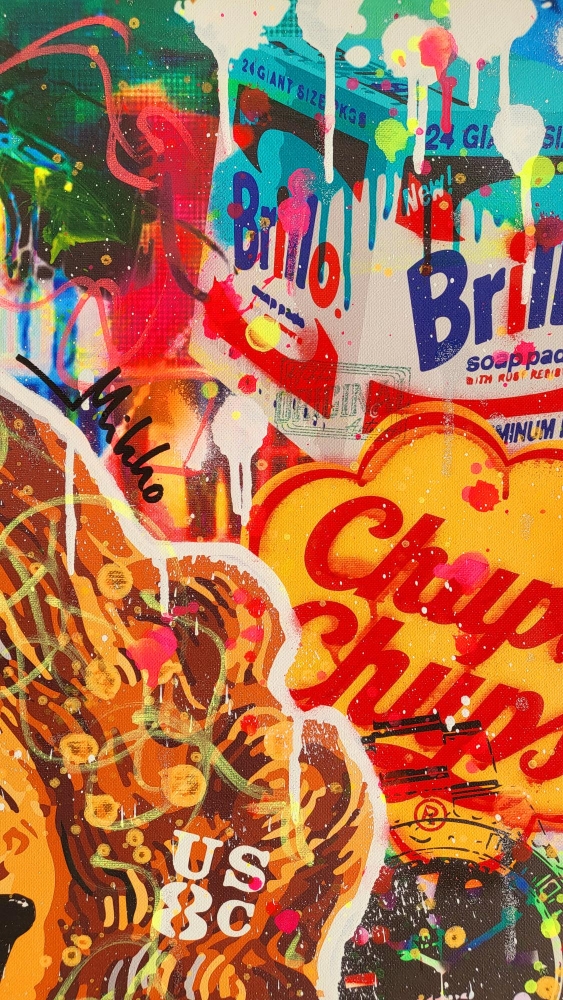 Prachtig groot en indrukwekkend werk van opkomende grafitti-kunstenaar Mikko. Origineel werk op doek. Mixed media: acryl en spuitbussen. Meer info over de kunstenaar kun je vinden op www.mikkoartist.com Geboren in Barcelona, wereldwijde expo's en verkoop. Geïnspireerd door Andy Warhol, Jeff Koons, Magrite, Rauschenberg, Mondriaan, Matisse, Dalí, Picasso, Miró, Banksy, Roy Lichtenstein, Keith Haring, Basquiat, Dillon Boy, Mr. Brainwash, Falcó etc. is Mikko wellicht de snelst groeiende kunstenaar op het gebied van Pop-Art en Grafitti Street-Art. Profiteer nu hij nog betaalbaar is ! Wordt verkocht met certificaat, uitgeschreven, gedateerd en gesigneerd door de kunstenaar. Wegens kwetsbaarheid, enkel af te halen in Antwerpen.