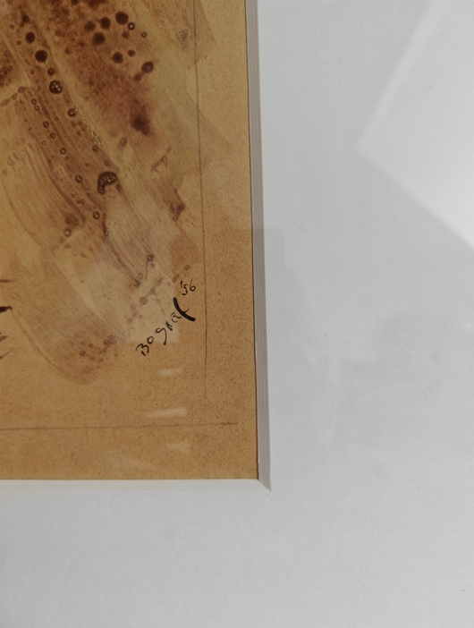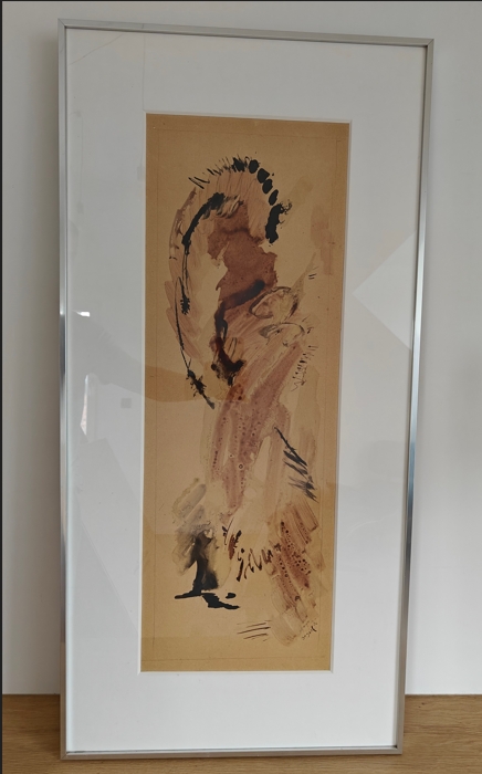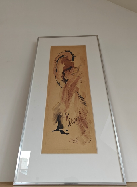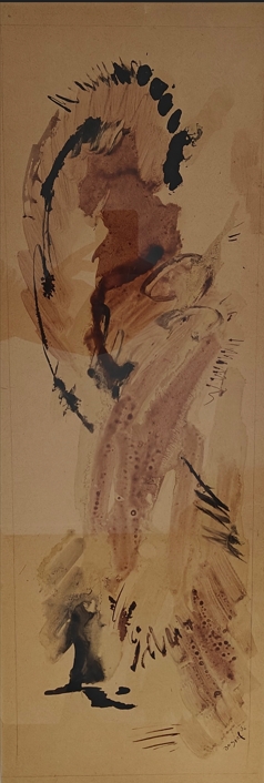 Bram Bogart (1921 - 2012) Untitled/niet getiteld Jaar: 1956 watercolour op papier Handgesigneerd en gedateerd 'Bogart '56' Afmetingen werk: 72.5 x 25.5 cm., Afmetingen kader: 94.5 x 46.5 cm. Herkomst Collectie d'Art, Amsterdam.