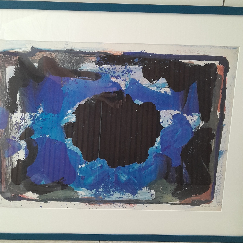 Handgesigneerd werk van Bram Bogart. Bram Bogart is een Nederlandse abstracte kunstschilder die geneutraliseerd werd tot Belg. Dit werk is zeer mooi professioneel ingekaderd en een e.a. Kan afgehaald of geleverd worden.