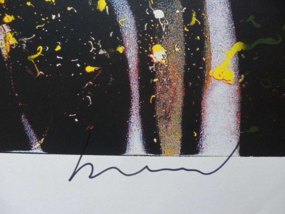 Zeer bijzondere en grote Kleurenzeefdruk van Herman Brood. Afmeting blad 100 x 70 cm in nieuwstaat. Het werk is Handgesigneerd en genummerd in een oplage van 175ex. Wordt geleverd met een echtheidscertificaat. het nummer kan afwijken van de foto.
