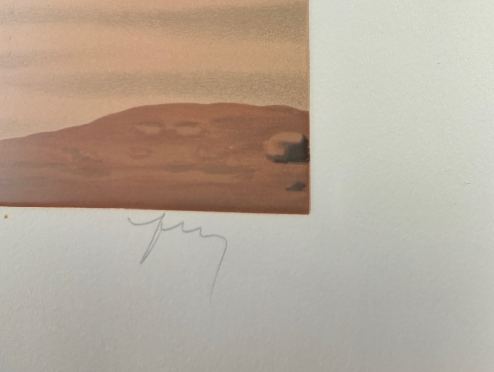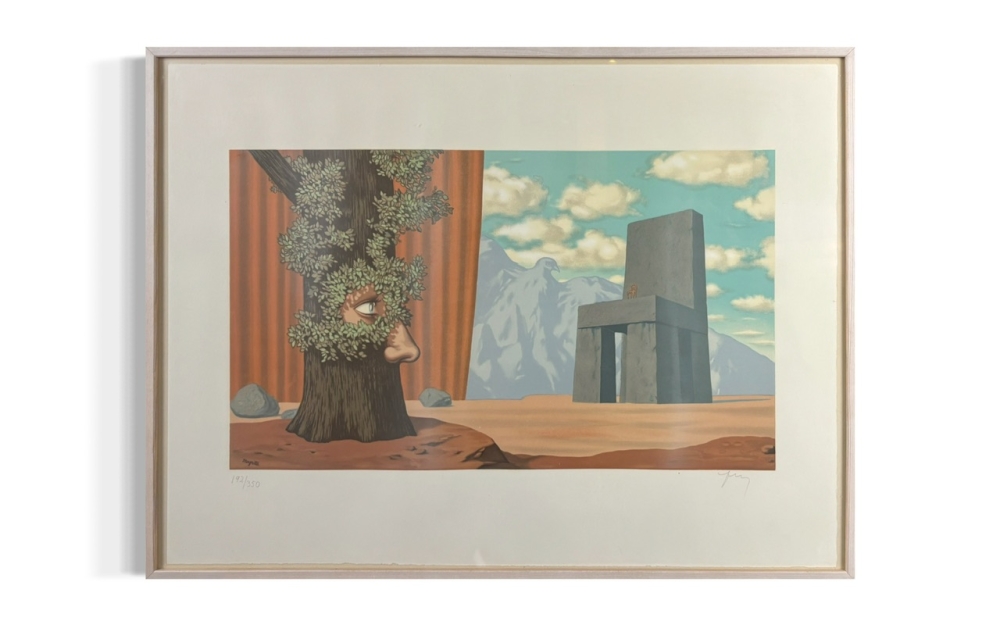 Lithografie Les Claires-Voies d'un Jeune Regard Embaument La Fête d'un Vieil uit 1968 door René Magritte. Uitgave gerealiseerd door Fernand Mourlot in een oplage van 350 exemplaren. Gesigneerd rechts onder door de uitgever en genummerd 192/350 links onder. In kader. Verzekerde verzending alsook ophaling mogelijk.