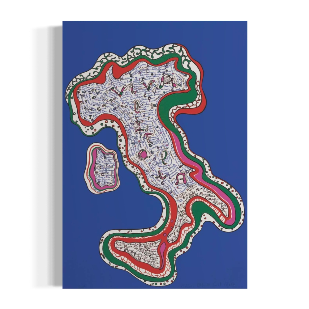 Gesigneerde zeefdruk editie door Niki De Saint Phalle getiteld Viva Italia. Hand gesigneerd door de kunstenares. Zowel verzekerde zending alsook ophalen beide mogelijk.